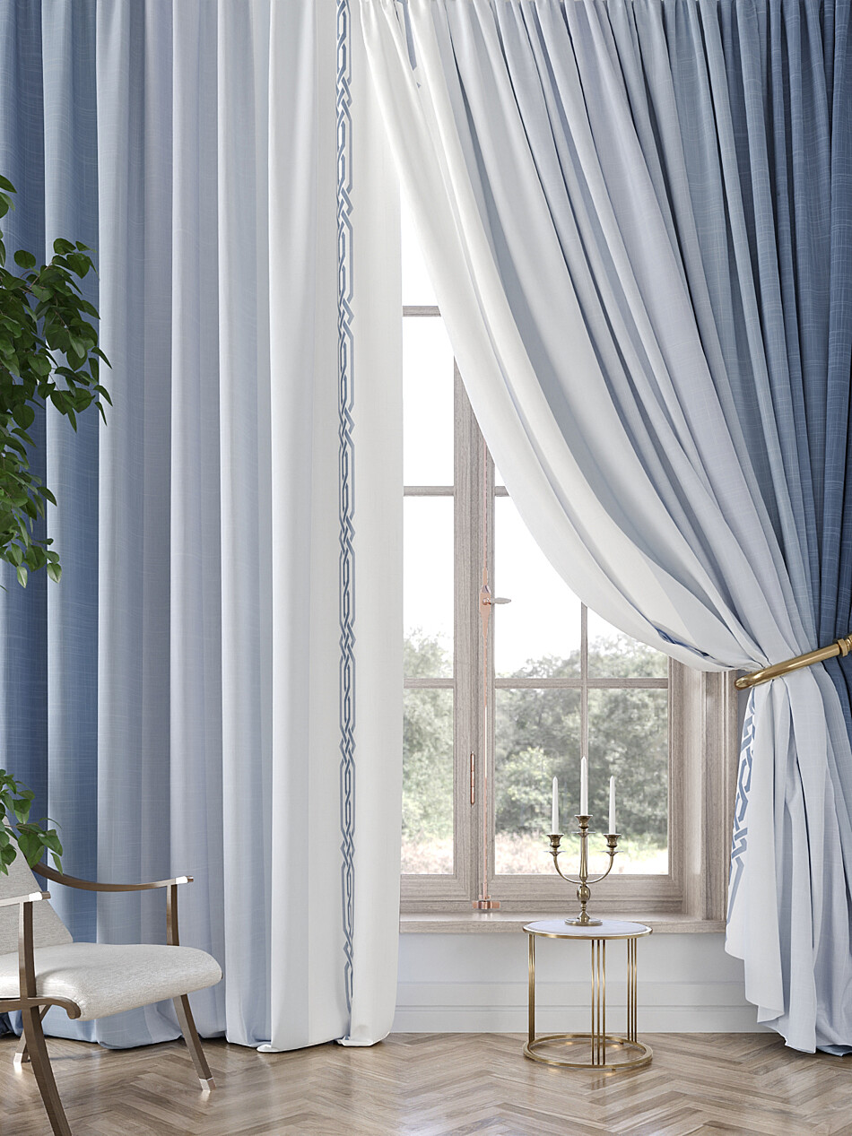 Молочно-голубые шторы