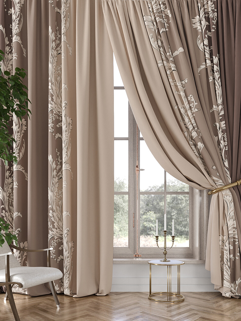 Шторы бежево-коричневые