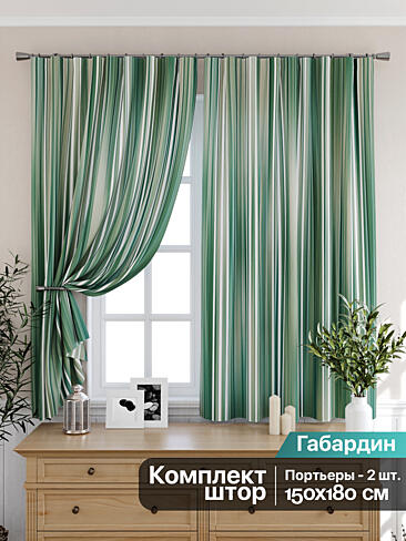 Занавески бело-зеленые