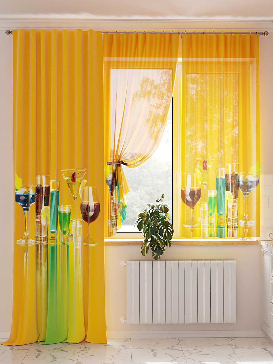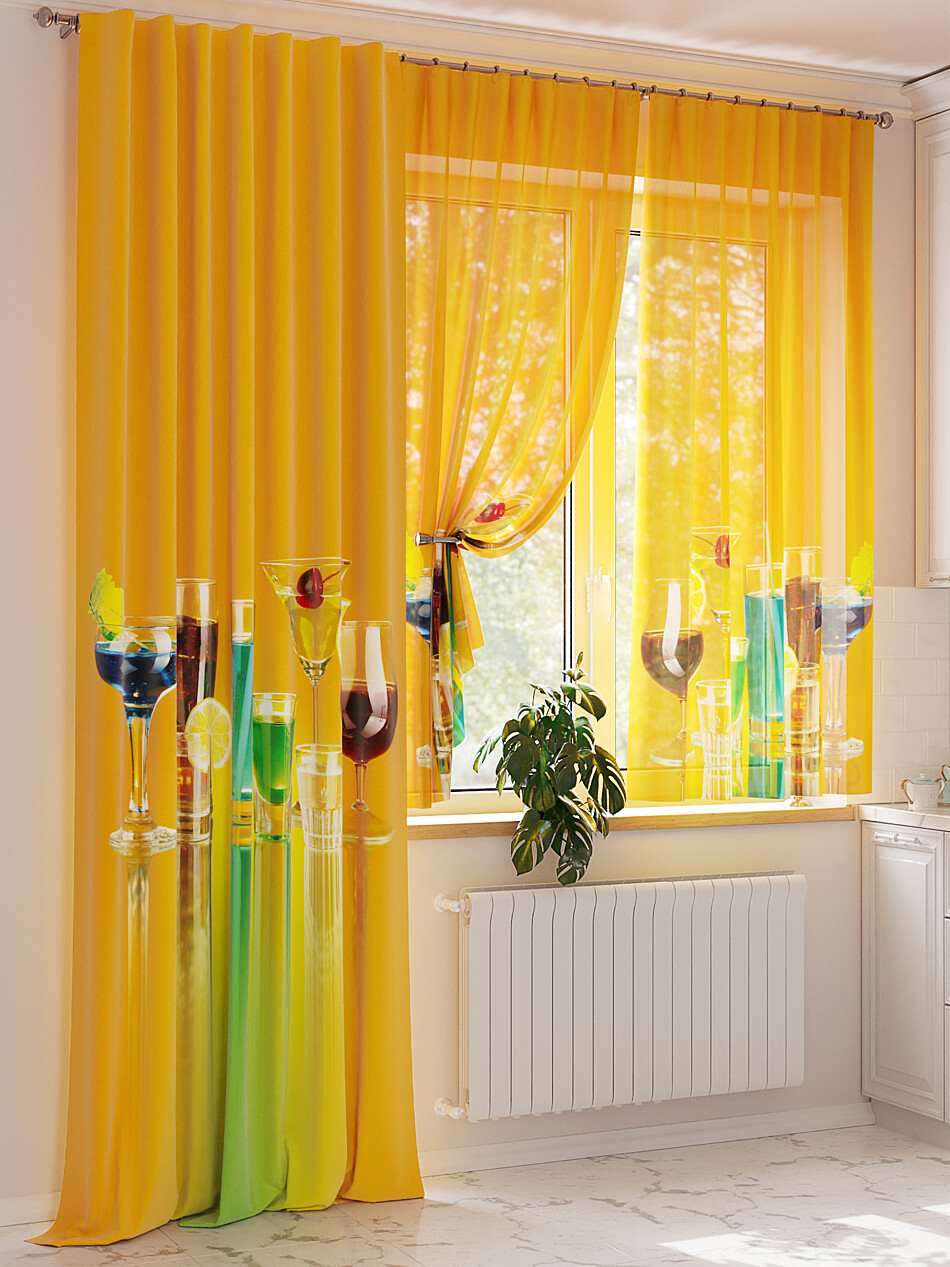 Желтые шторы для кухни