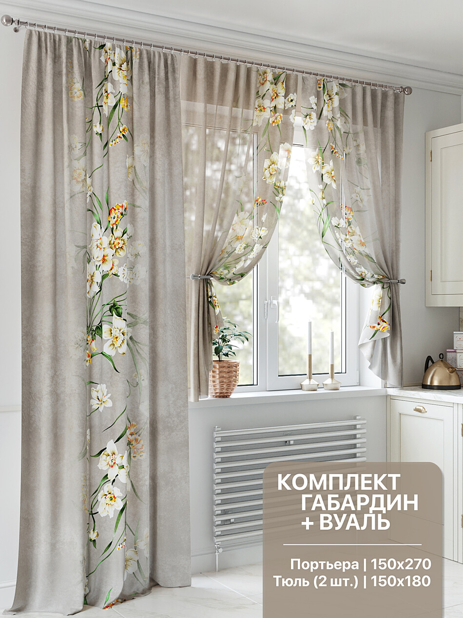 553083260 Портьера 150х260 см — 1 шт., вуаль 150х180 см — 2 шт.