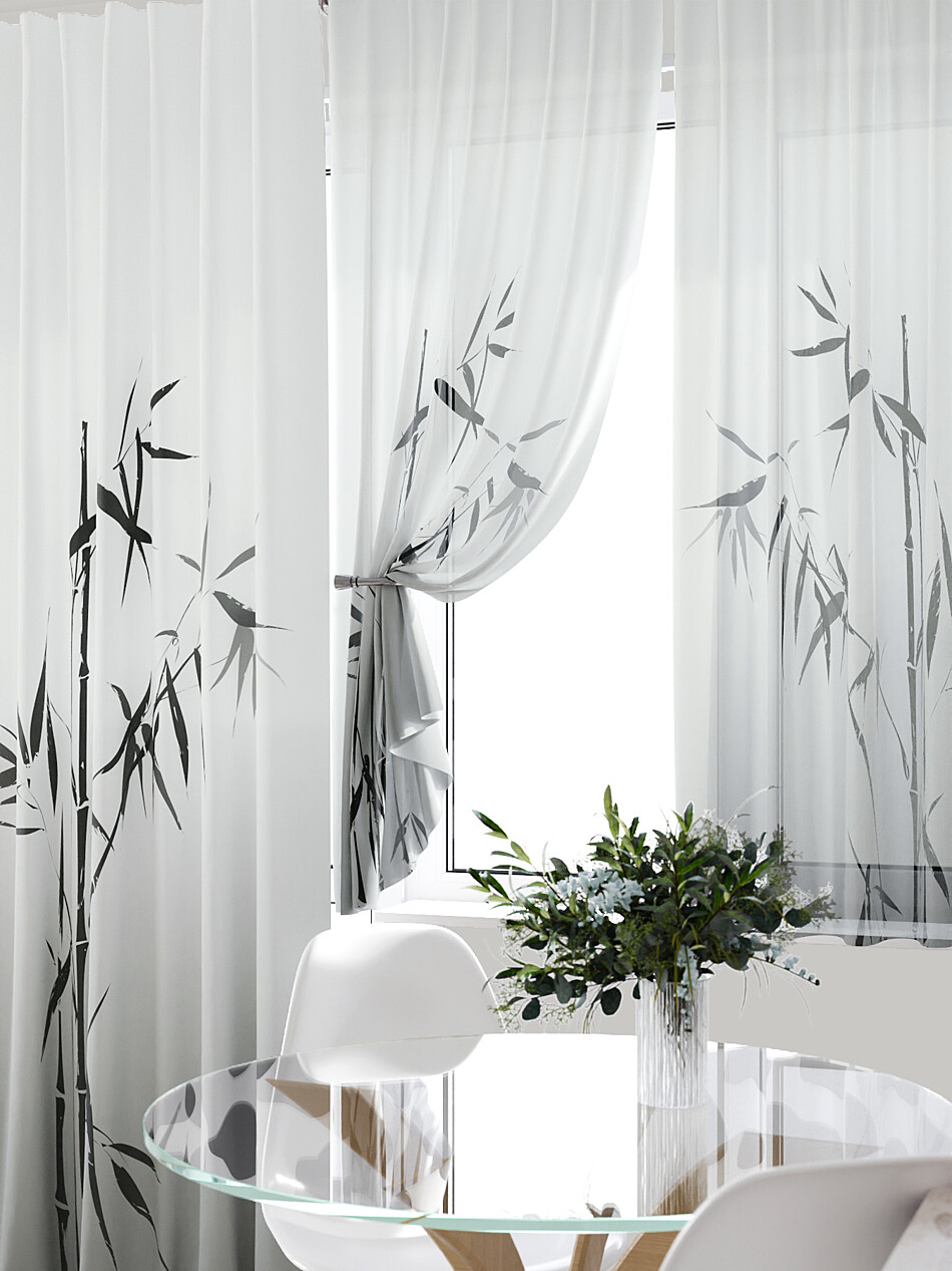 Тюль с черным рисунком