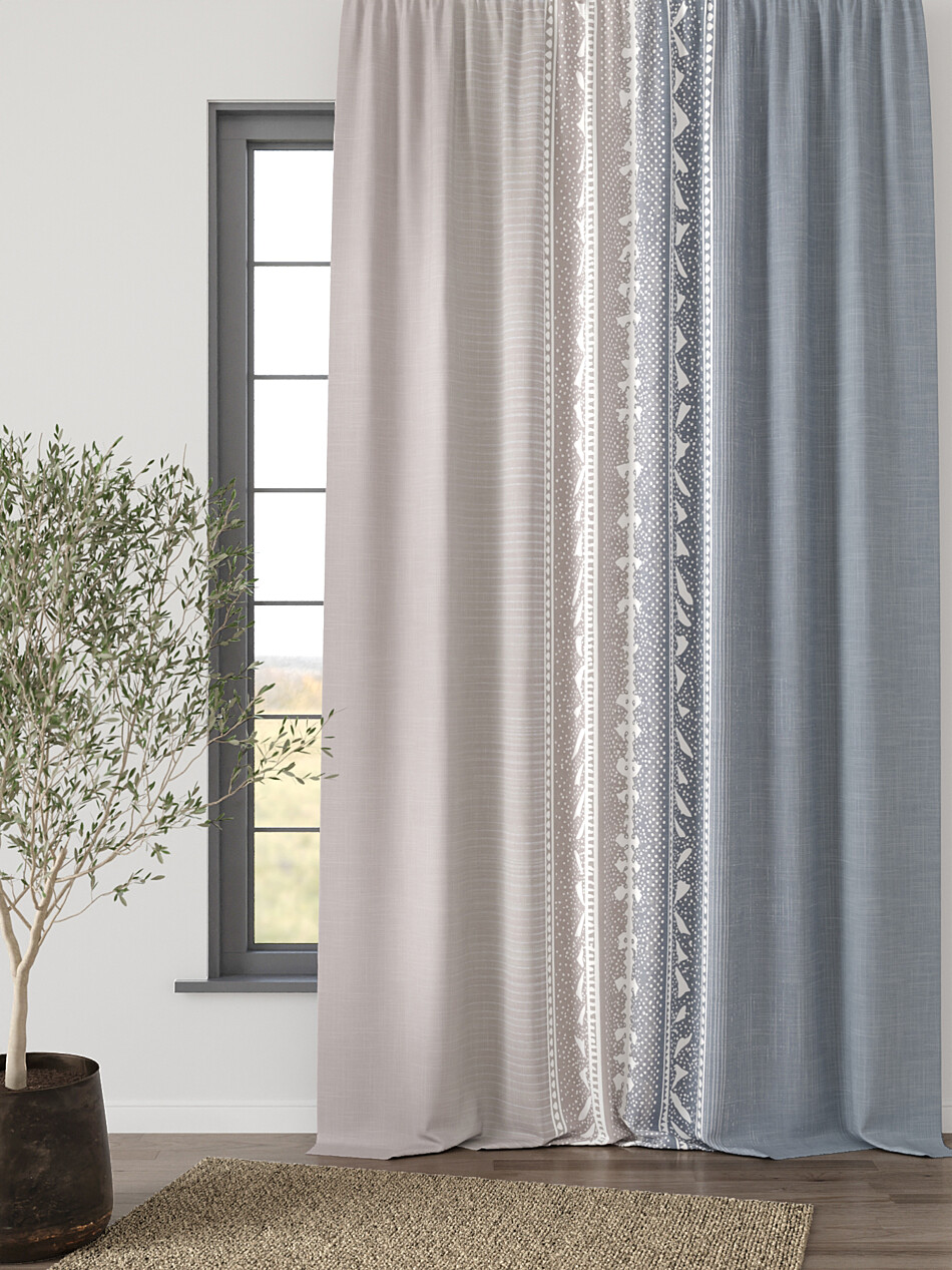 Шторы бежево-голубые