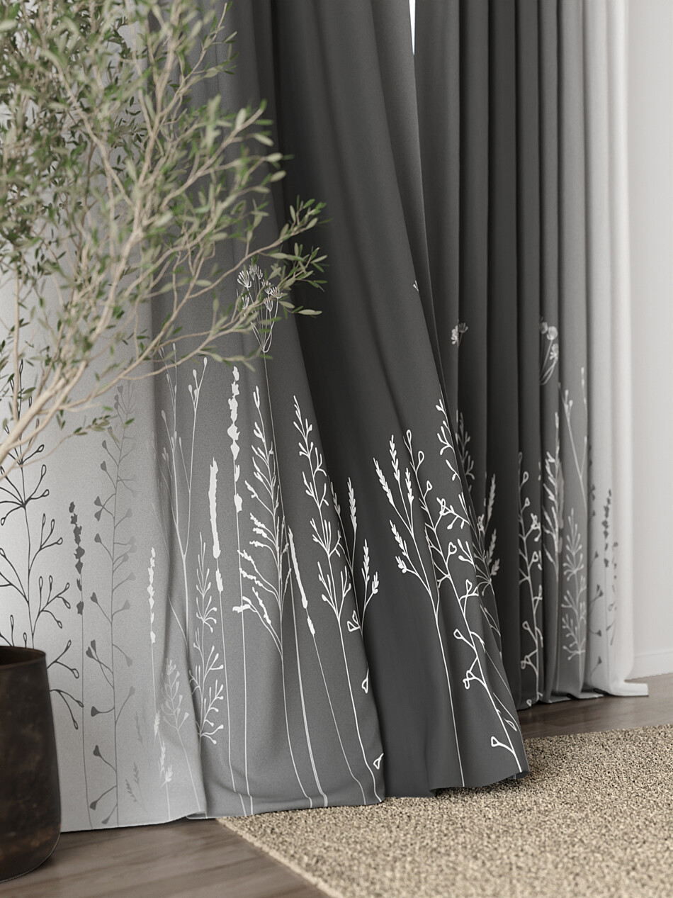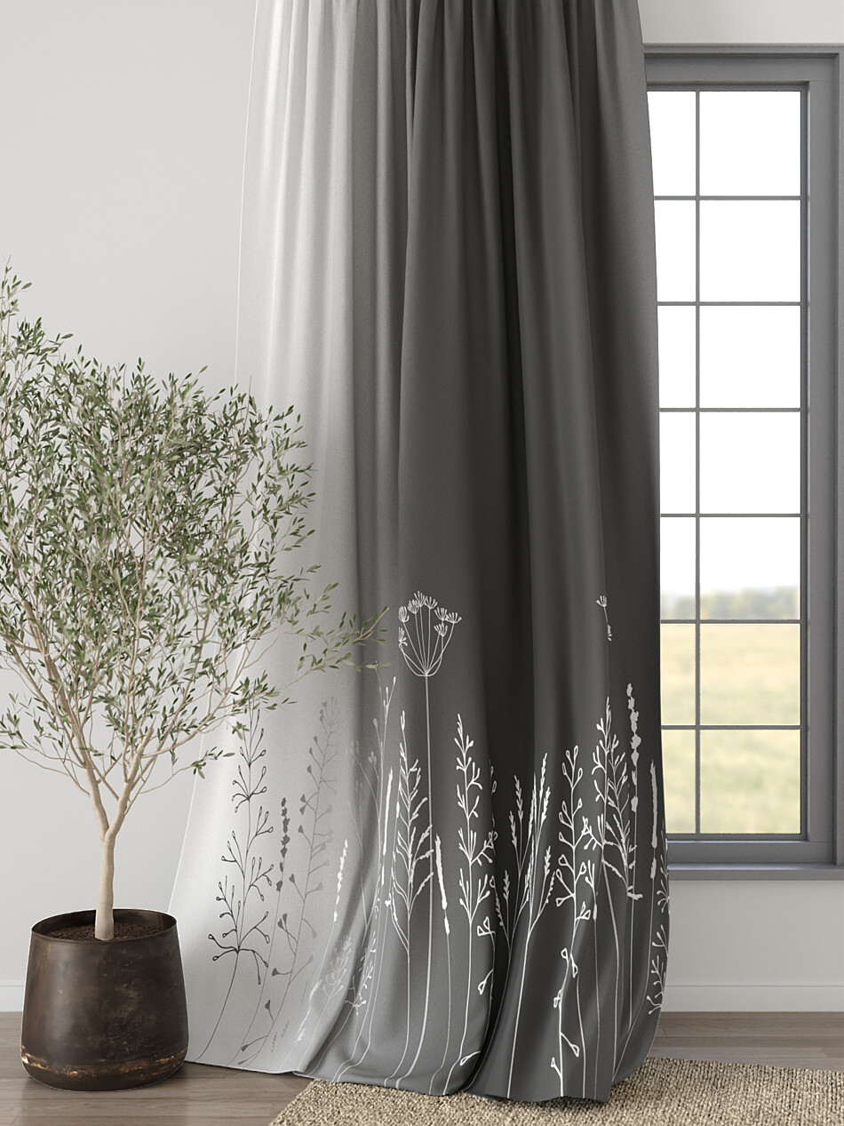 Шторы с черными цветами
