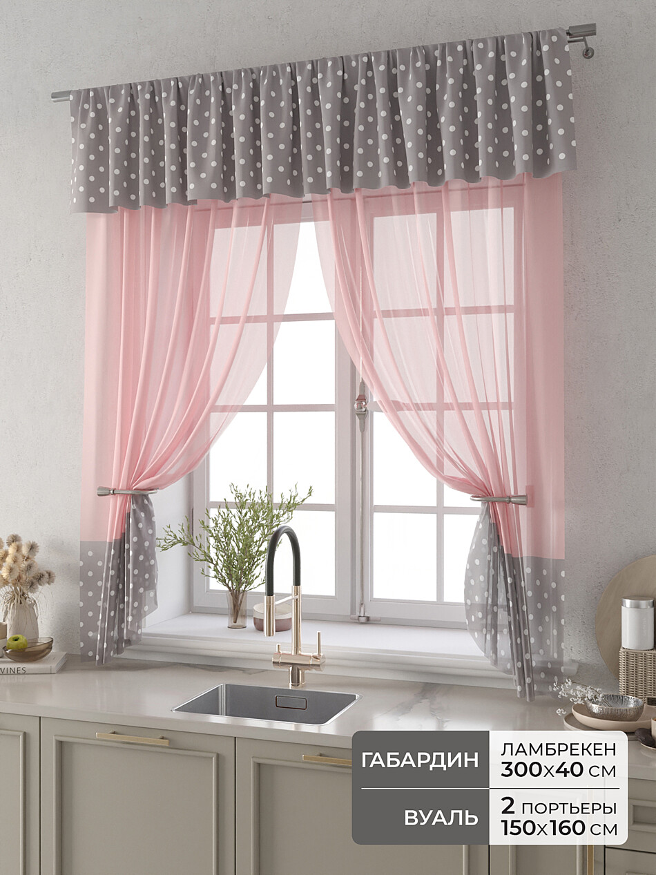 705190 Портьера 2 шт. — 150х160 см., вуаль 150х60 см — 1 шт., подхват - 2 шт.