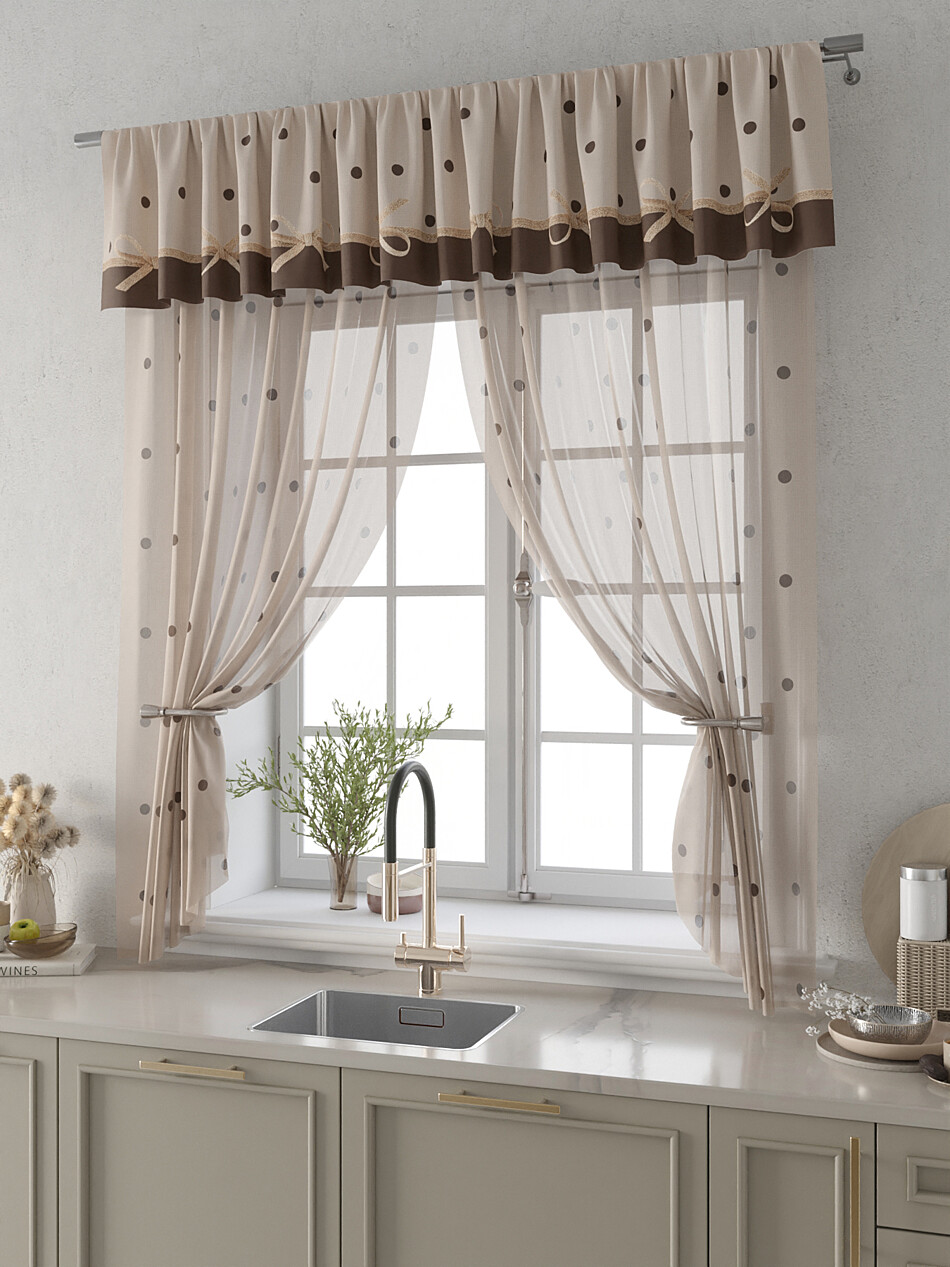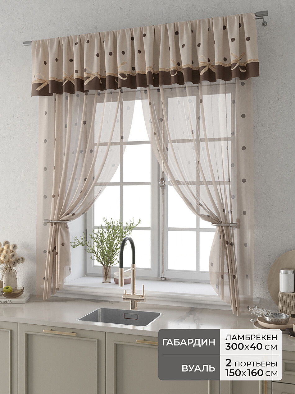 705078 Портьера 2 шт. — 150х160 см., вуаль 150х60 см — 1 шт., подхват - 2 шт.