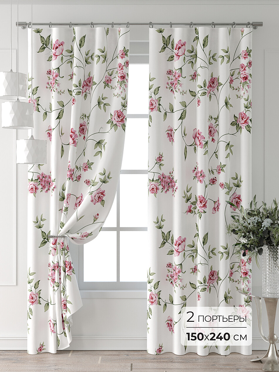 Шторы с розовым цветком