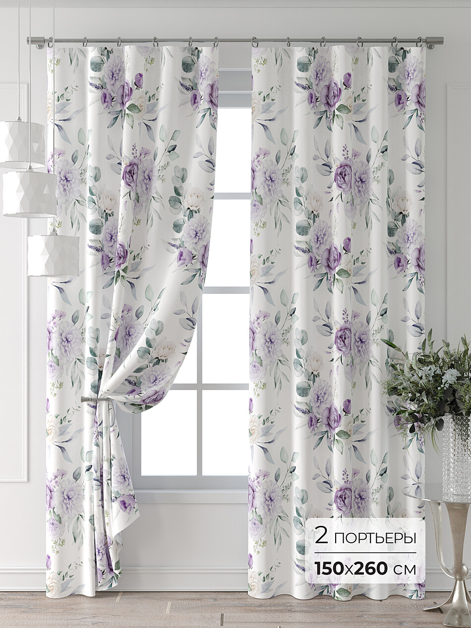 Шторы с фиолетовым цветком