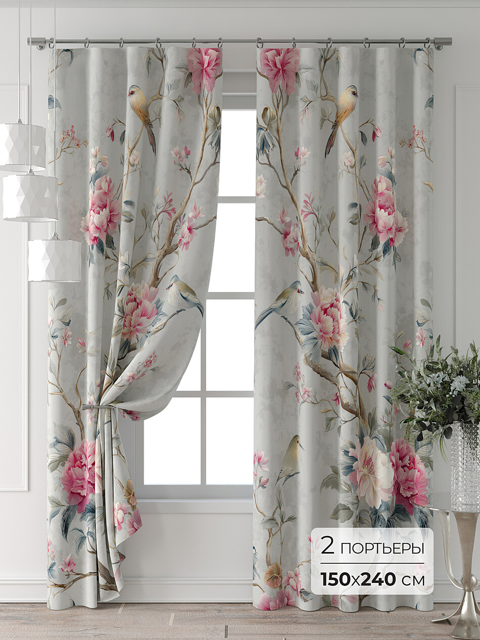 Шторы с розовым цветком