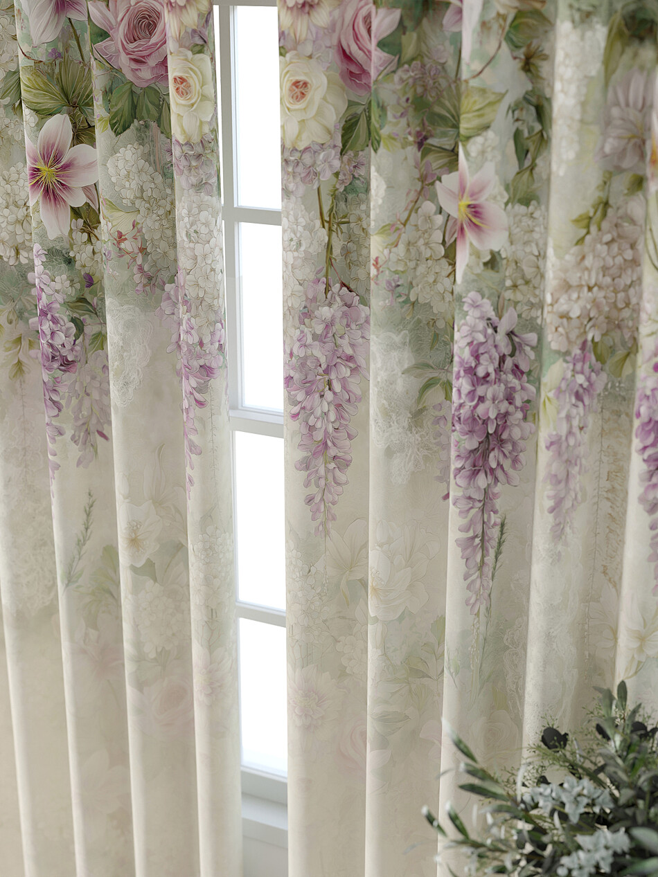 Шторы с фиолетовым цветком