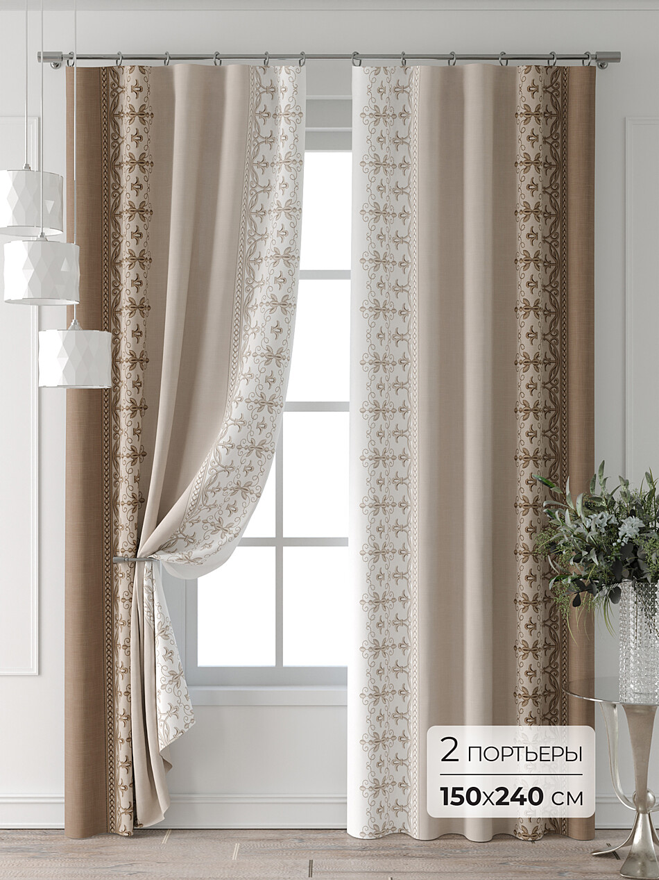Шторы бежево-коричневые