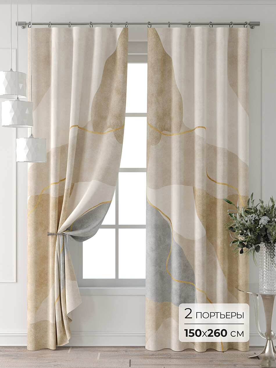 Бежево-золотые шторы
