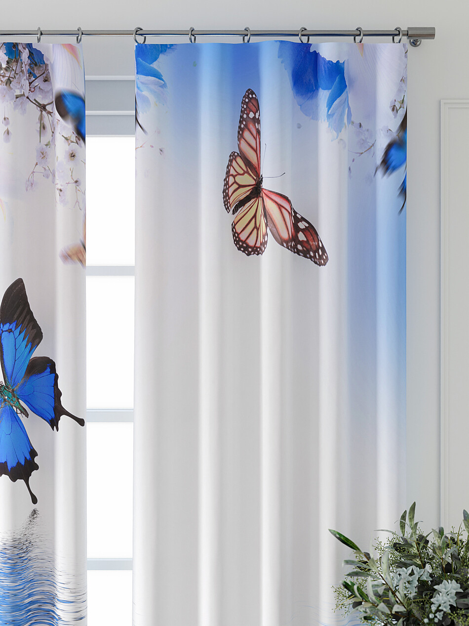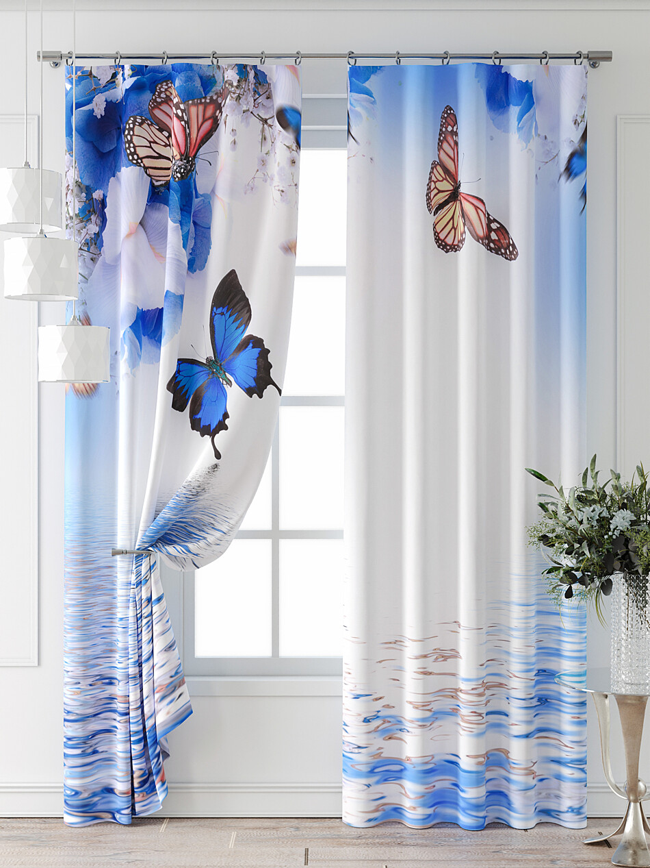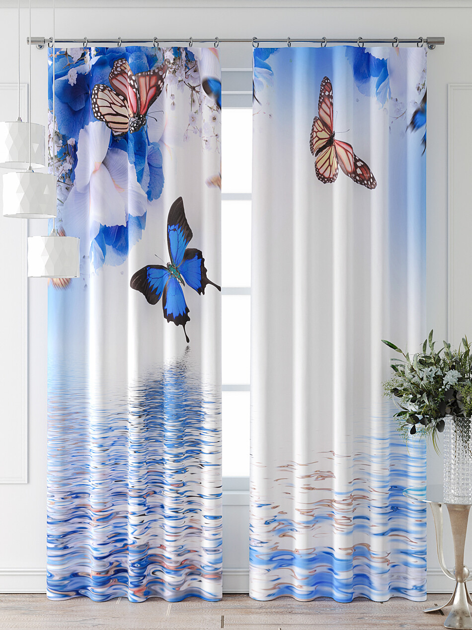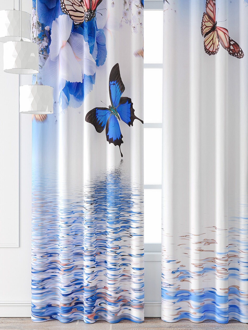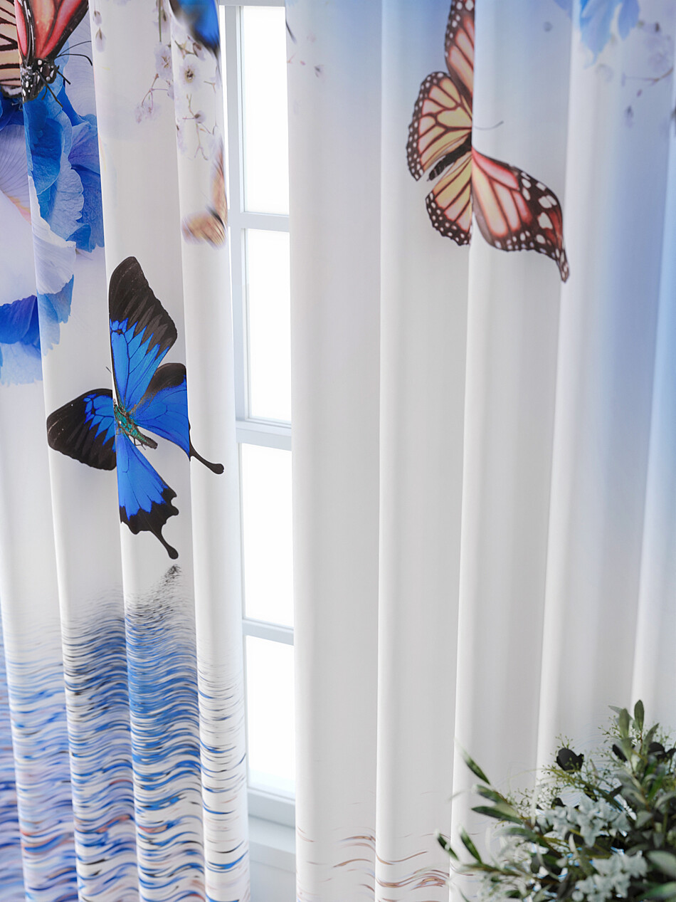 Шторы с голубыми орхидеями