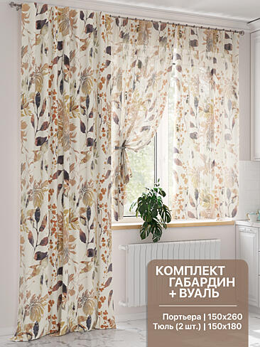 924014 Портьера 150х260 см. — 1 шт., вуаль 150х170 см. — 2 шт., ламбрекен 300х40 см. — 1 шт.