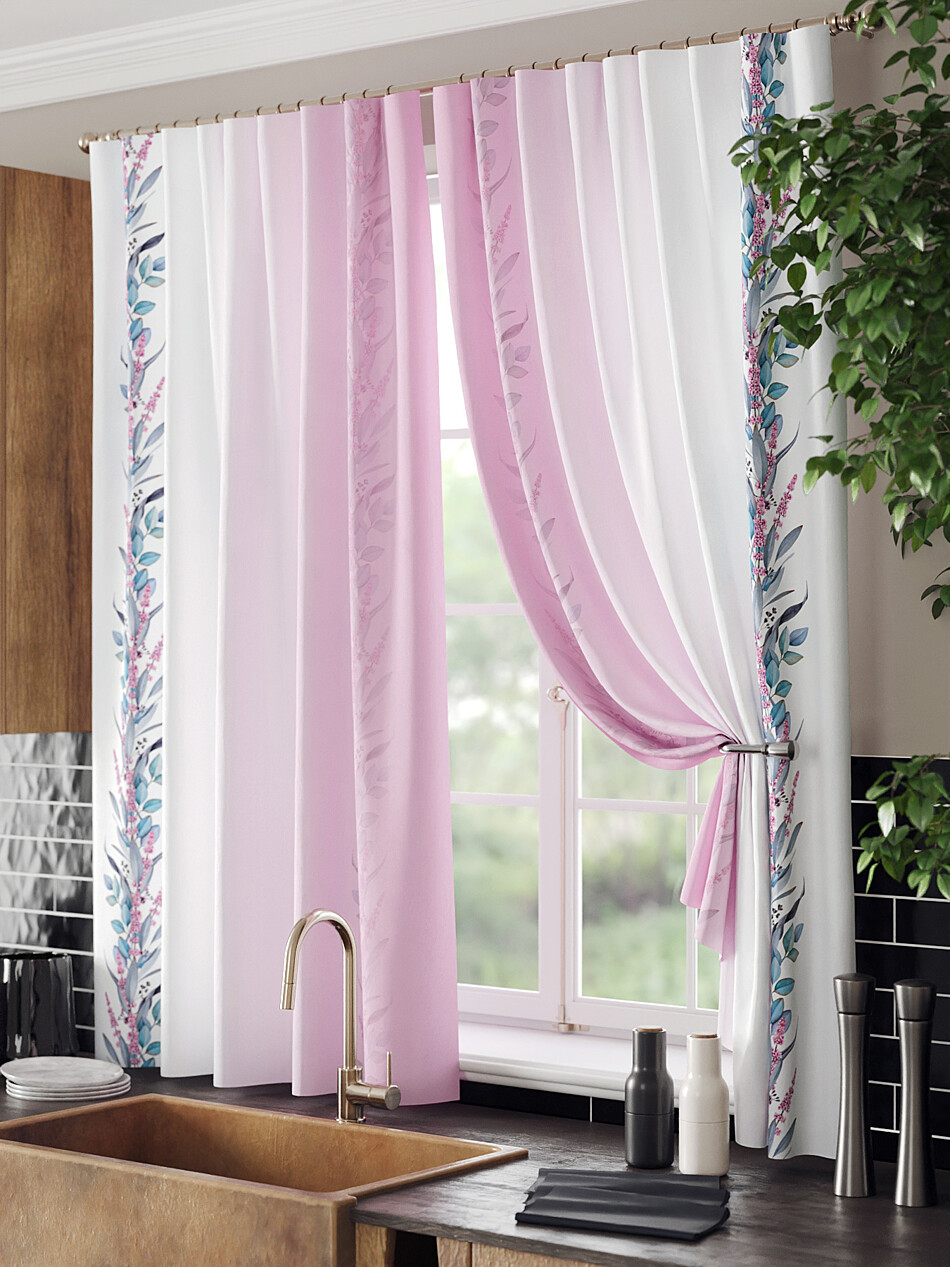 Шторы бело-розовые
