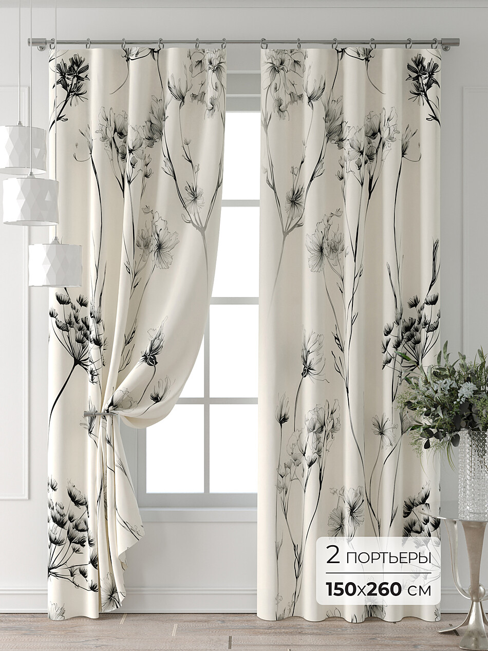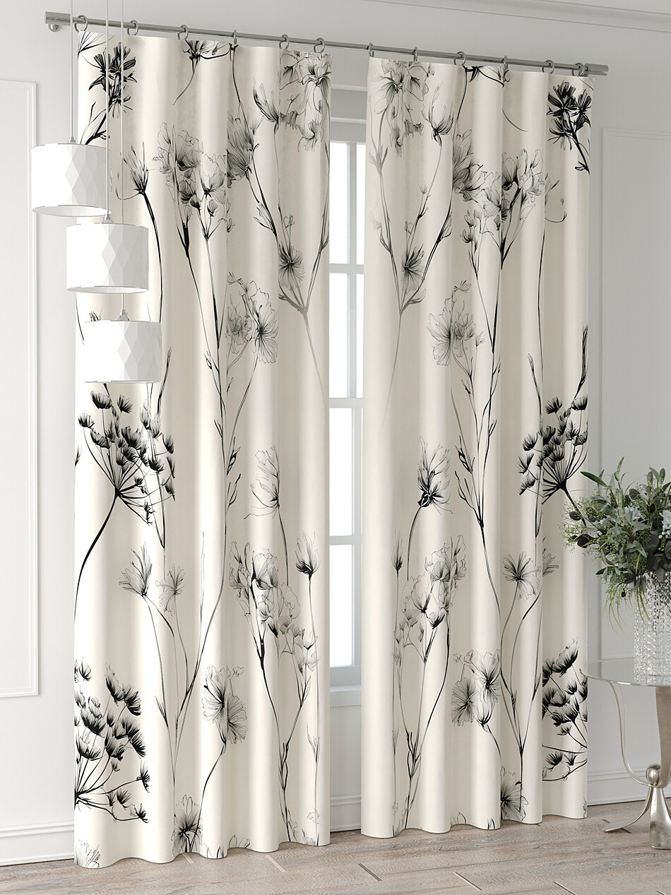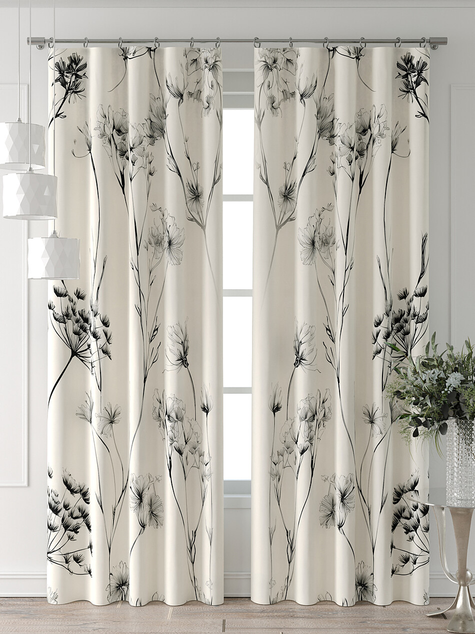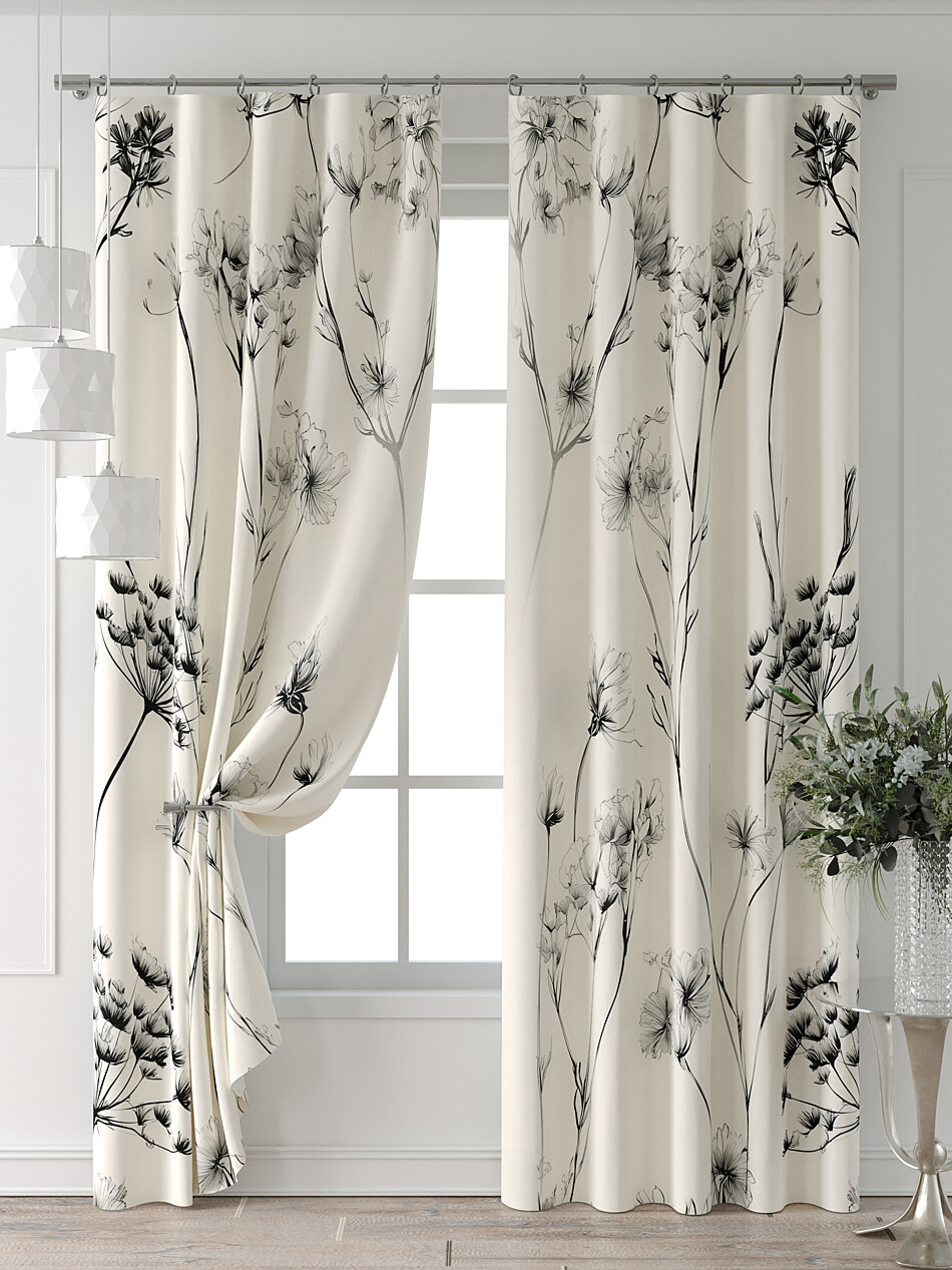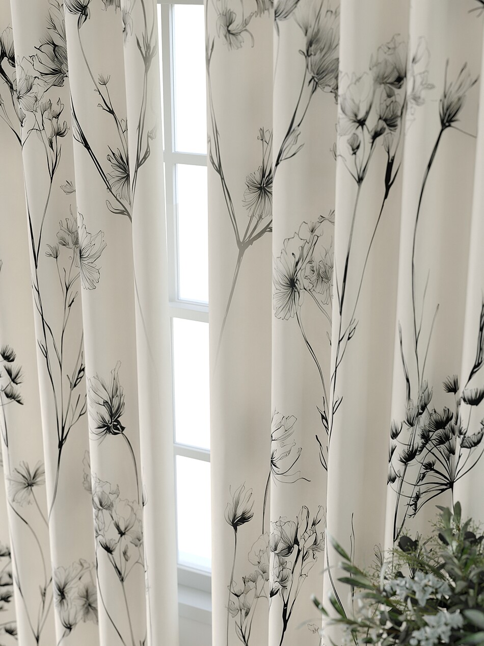 Шторы с черными цветами