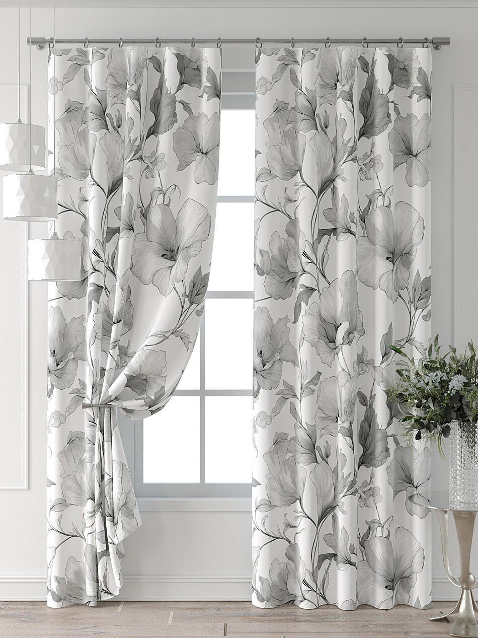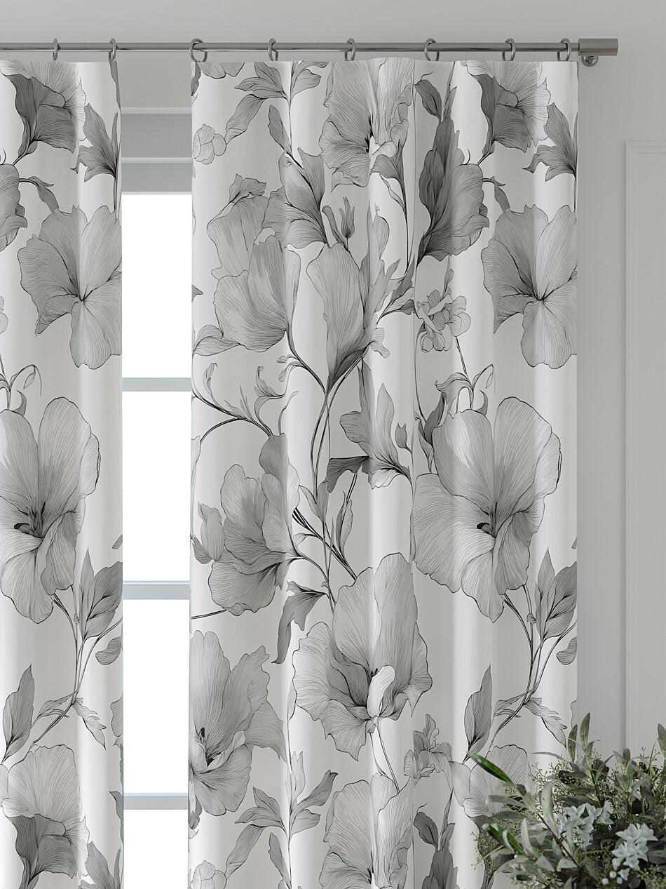 Шторы с черными цветами