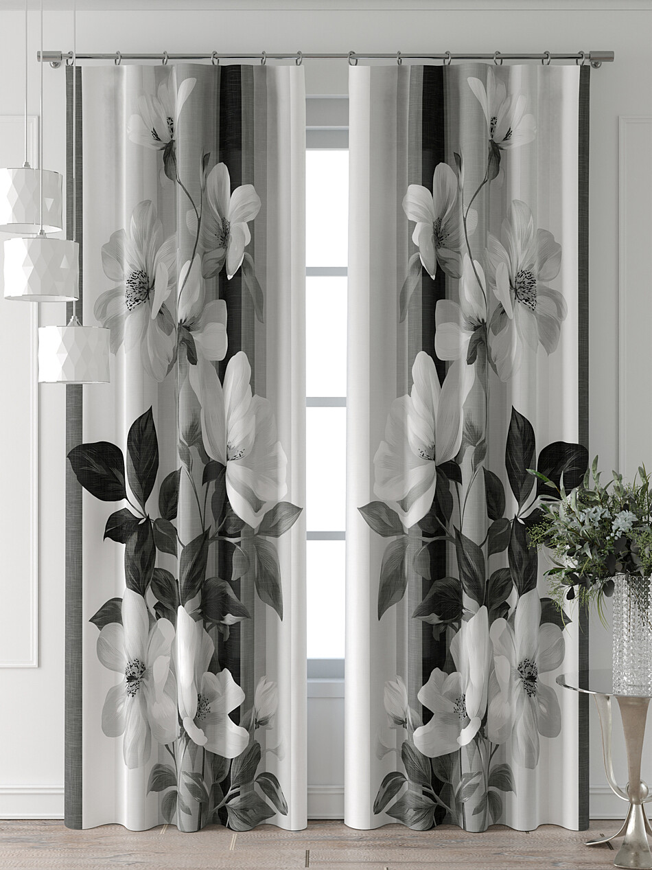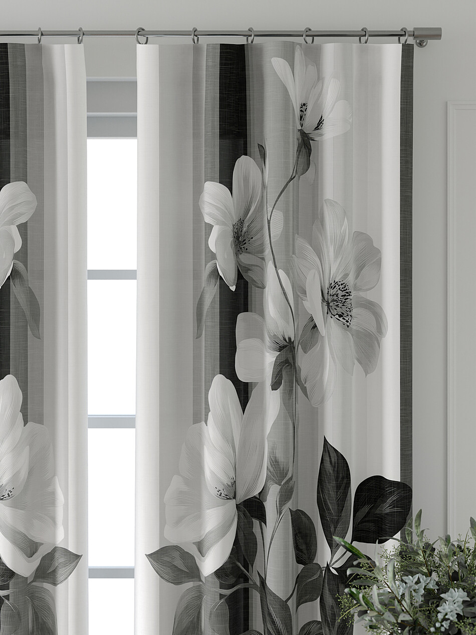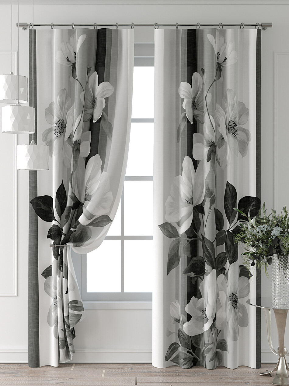 Шторы с черными цветами