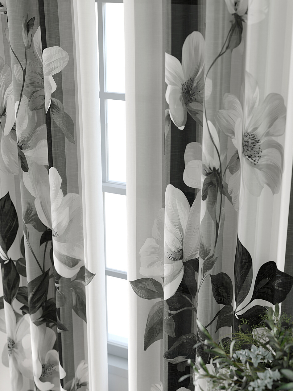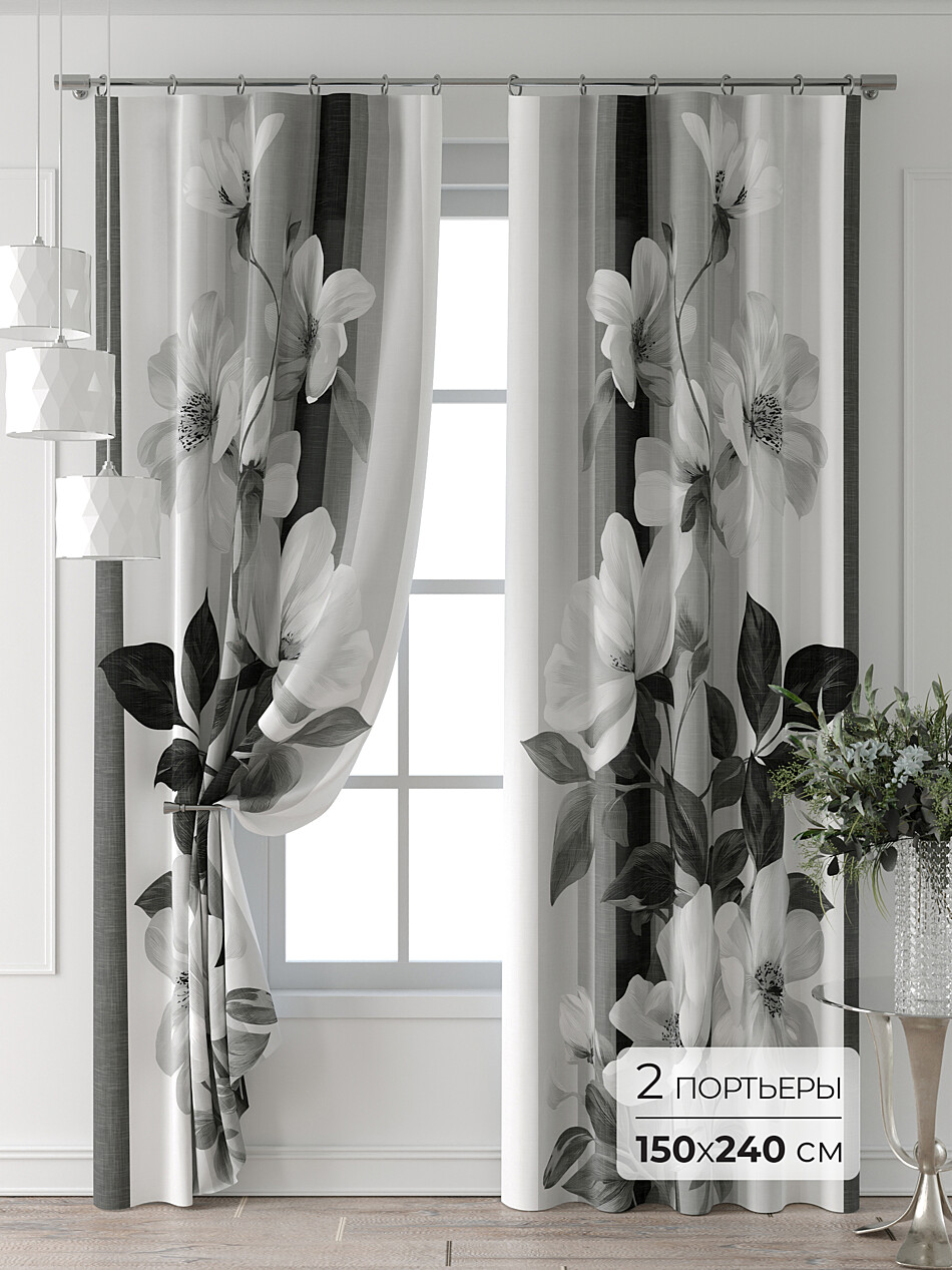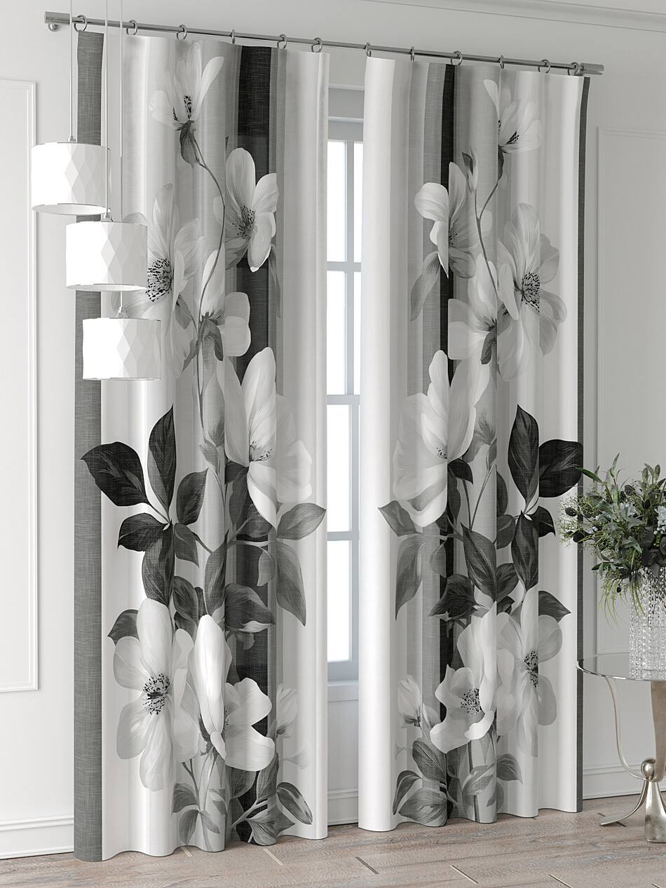 Шторы с черными цветами