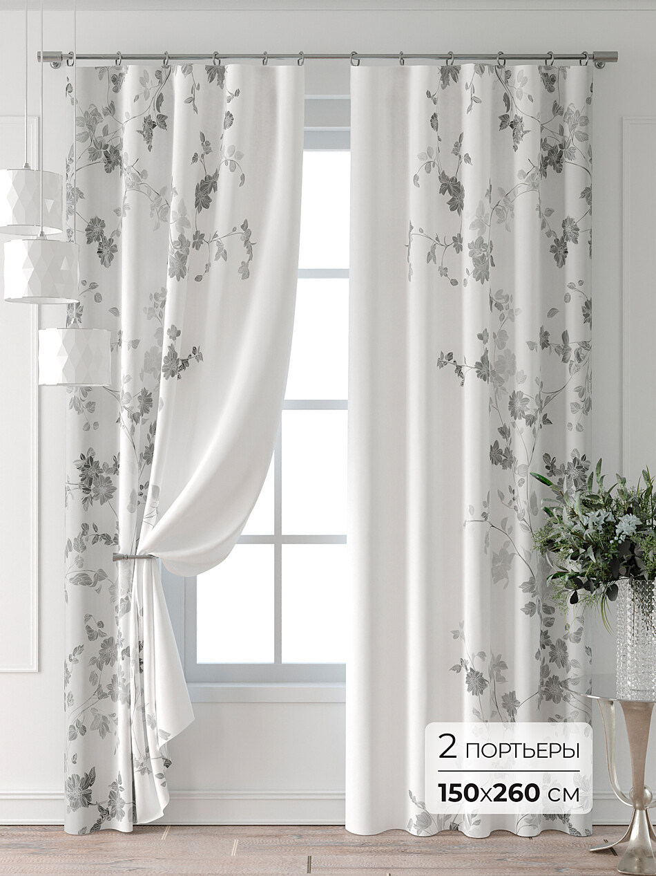 Шторы с черными цветами