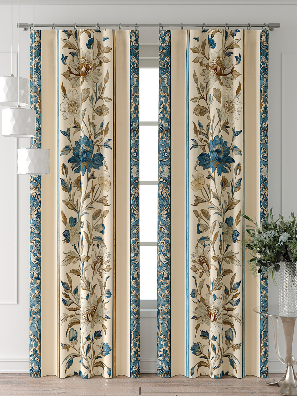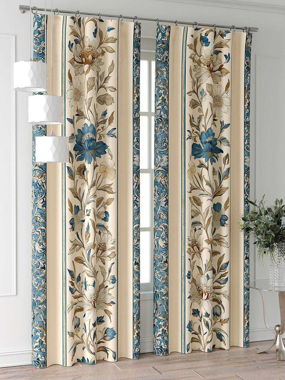 Шторы бежево-голубые
