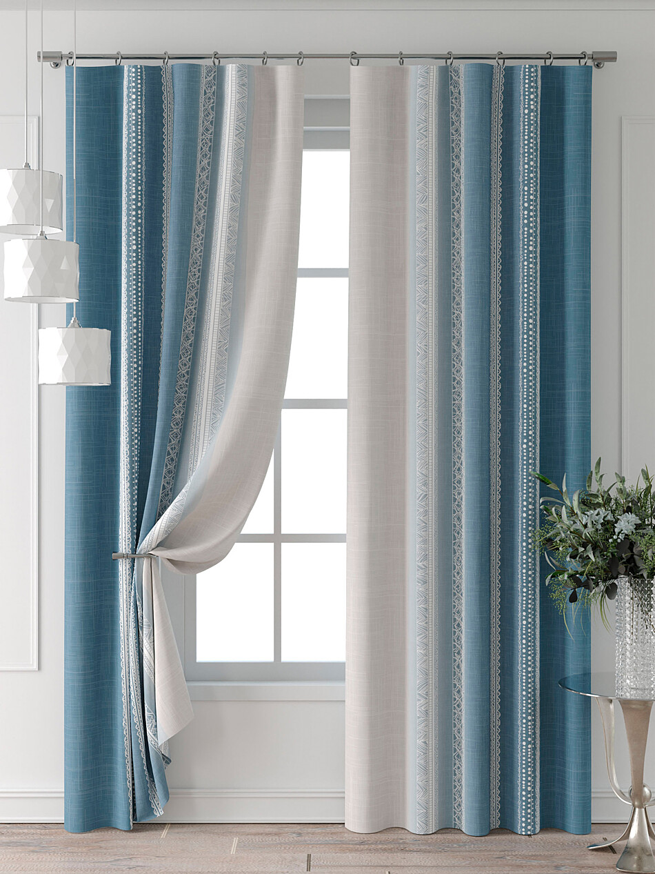 Шторы бежево-голубые
