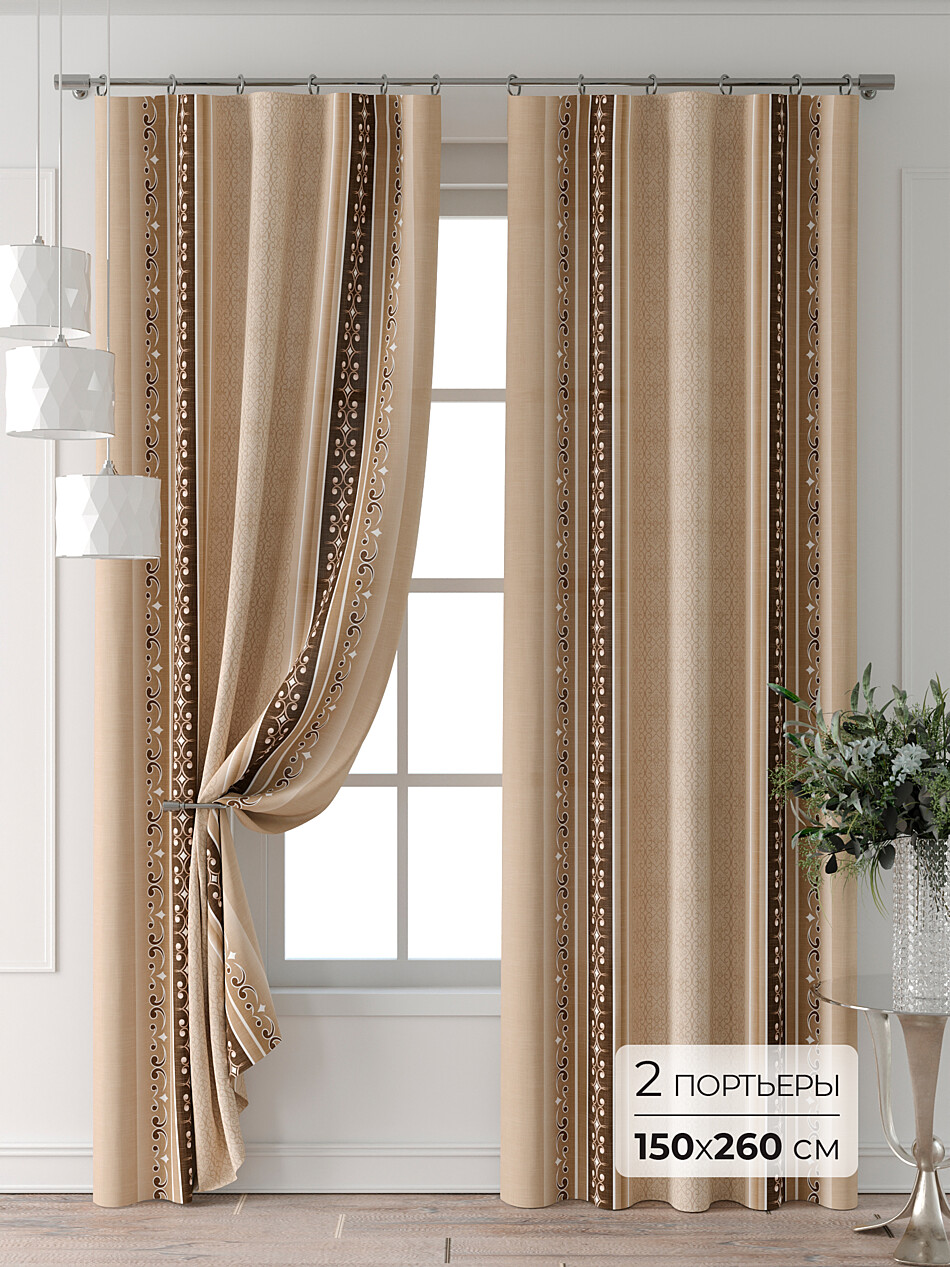 Шторы бежево-коричневые