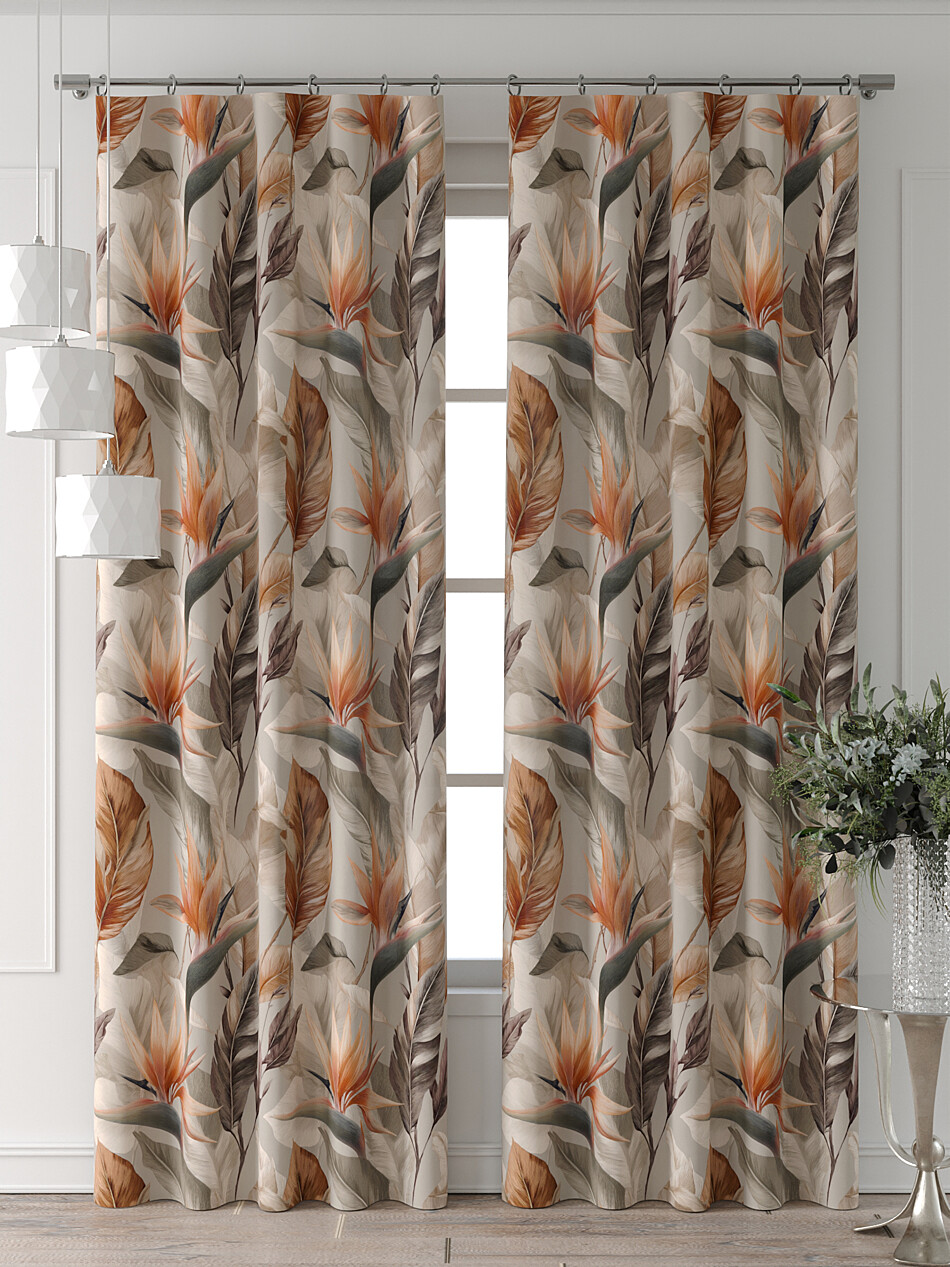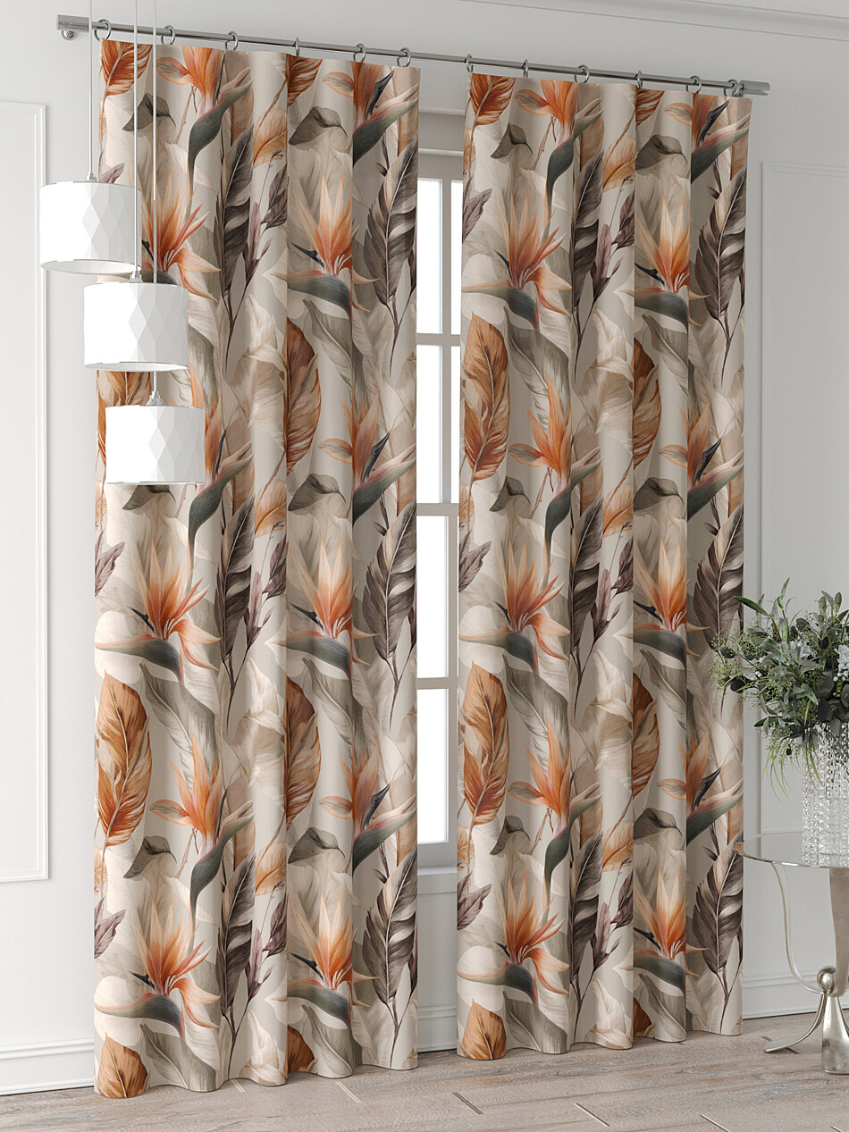 Шторы с оранжевыми цветами