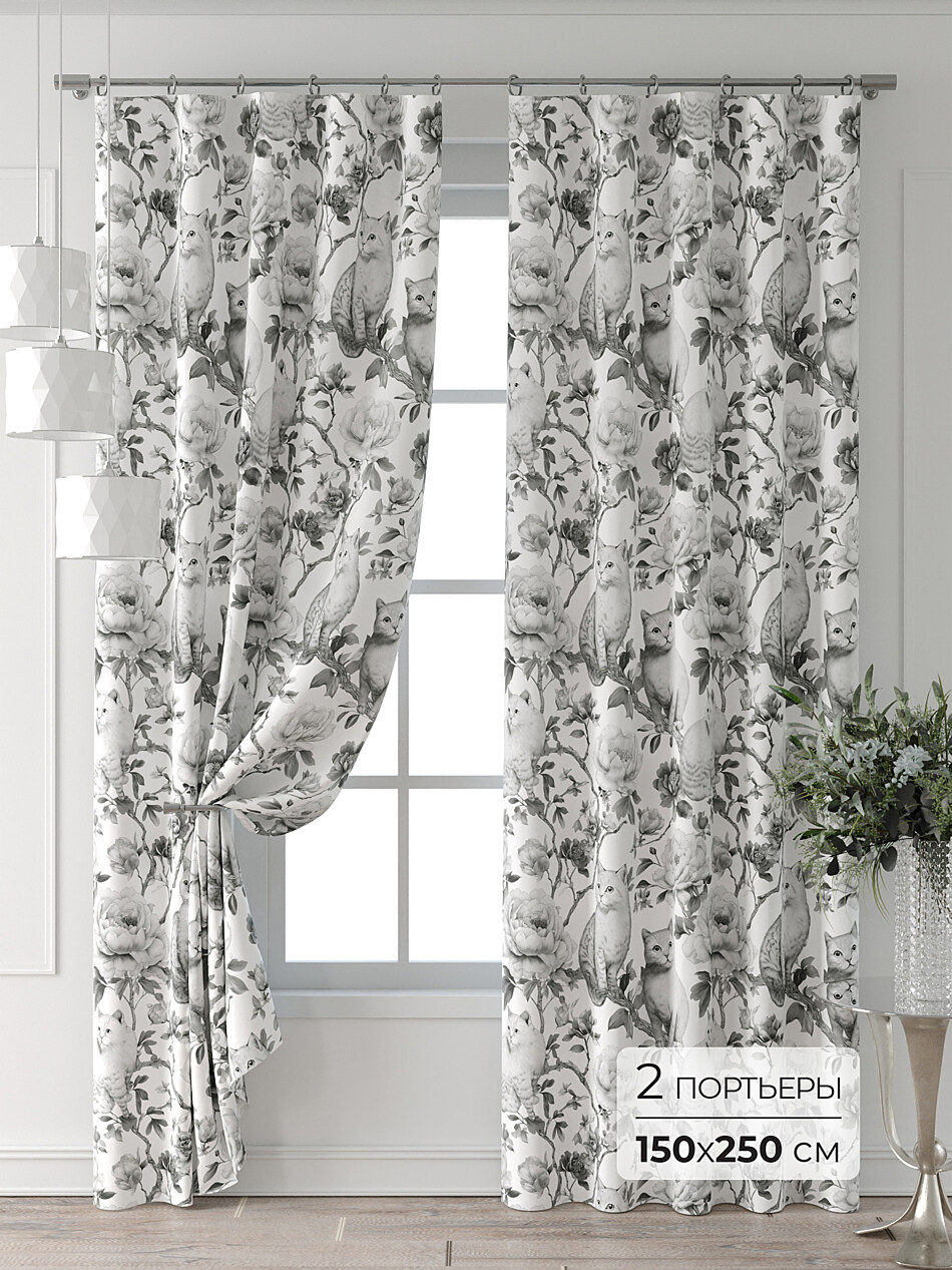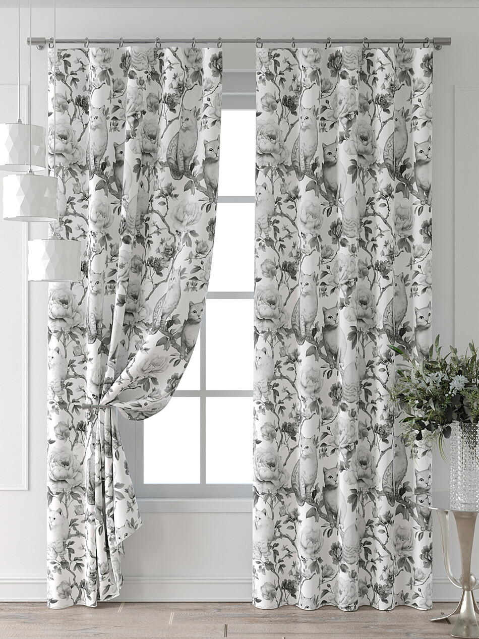 Шторы с черными цветами