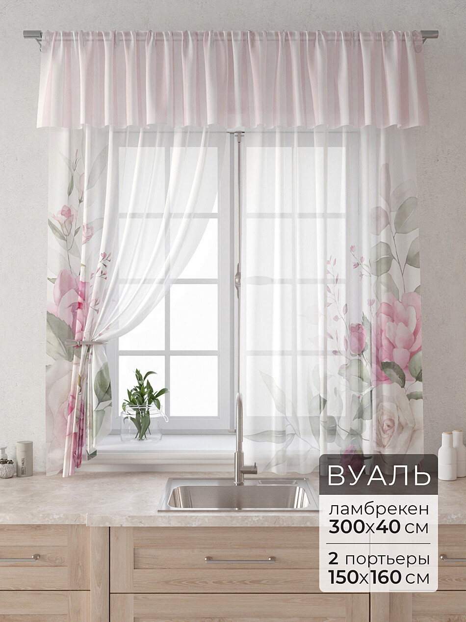 705028 Портьера 2 шт. — 150х160 см., вуаль 150х60 см — 1 шт., подхват - 2 шт.
