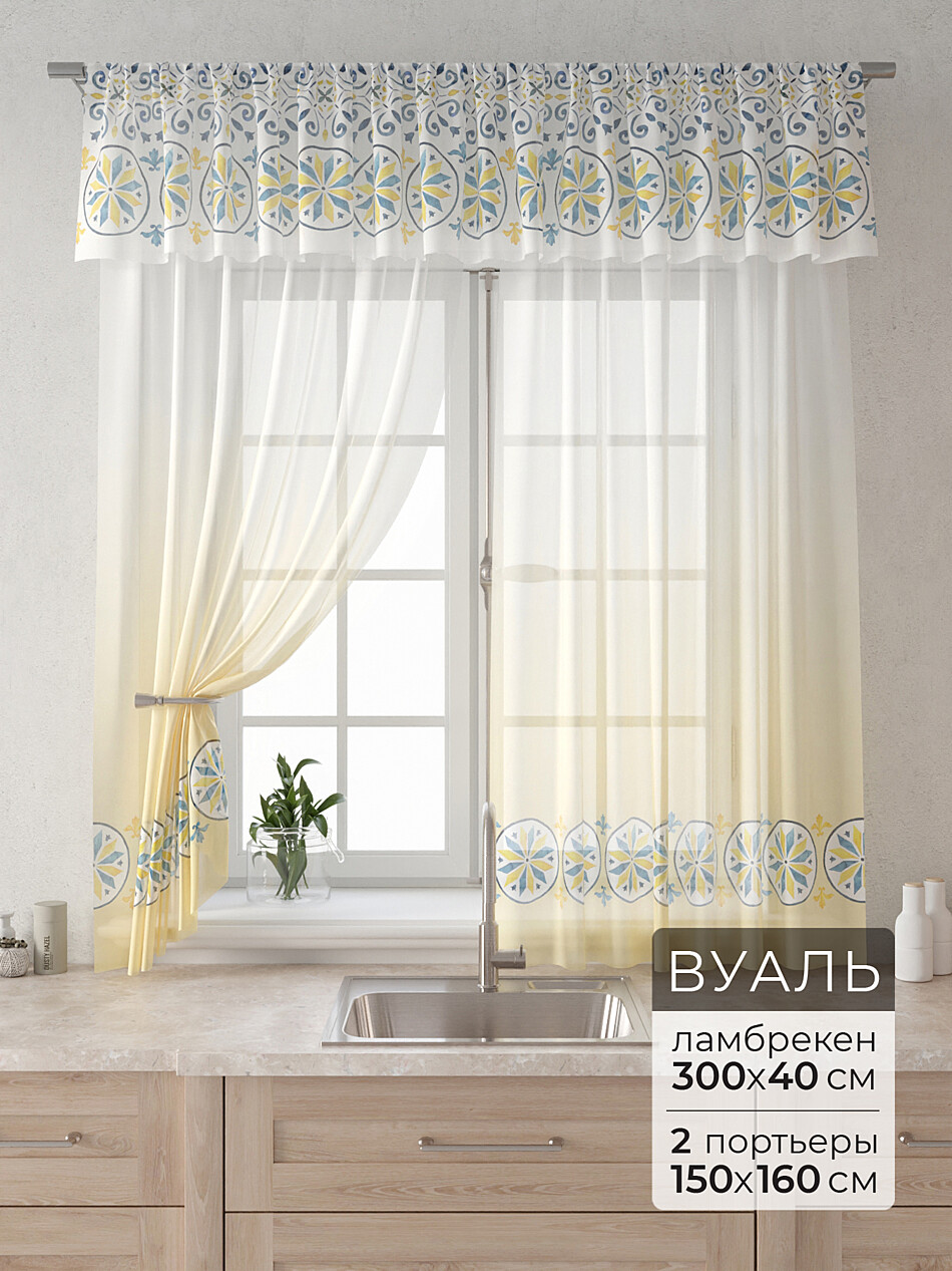 705085 Портьера 2 шт. — 150х160 см., вуаль 150х60 см — 1 шт., подхват - 2 шт.
