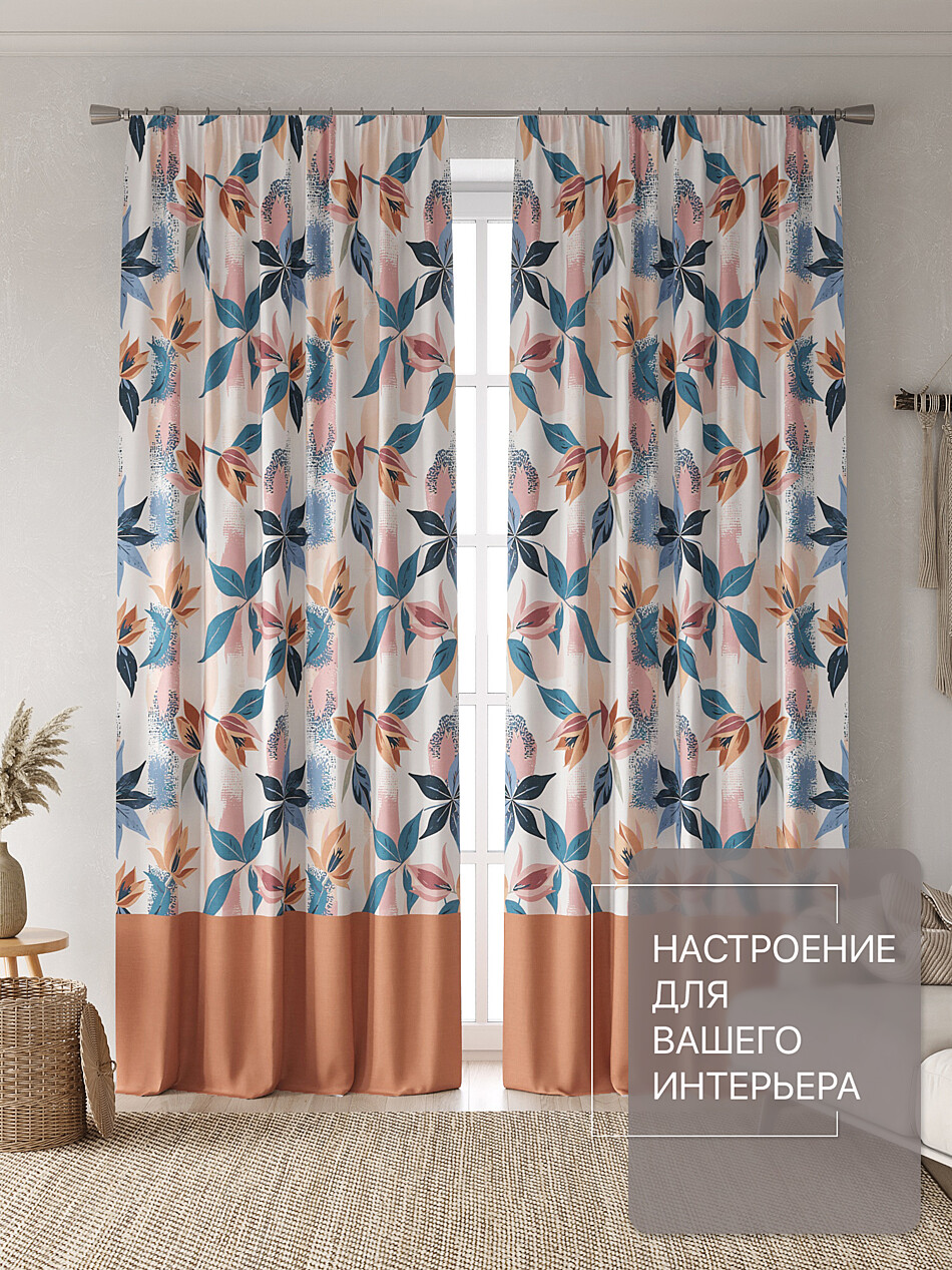 Шторы с оранжевыми цветами