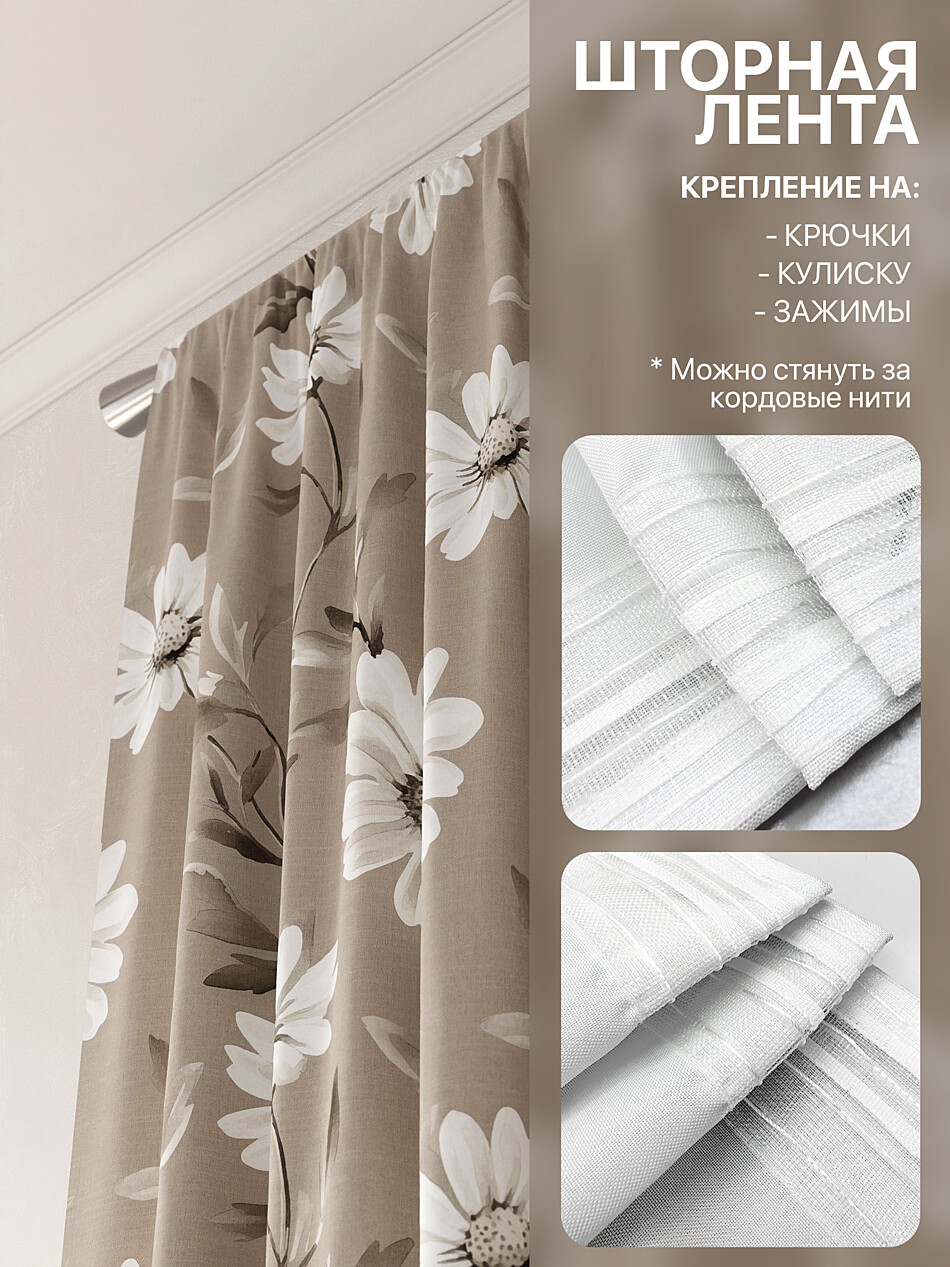 Крепление: Шторная лента (крючки), Кулиска Подробнее