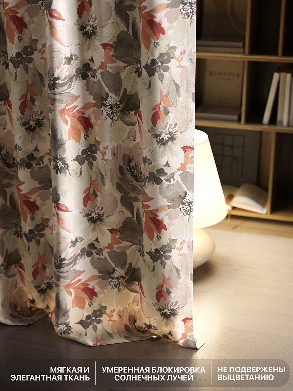 Шторы с оранжевыми цветами