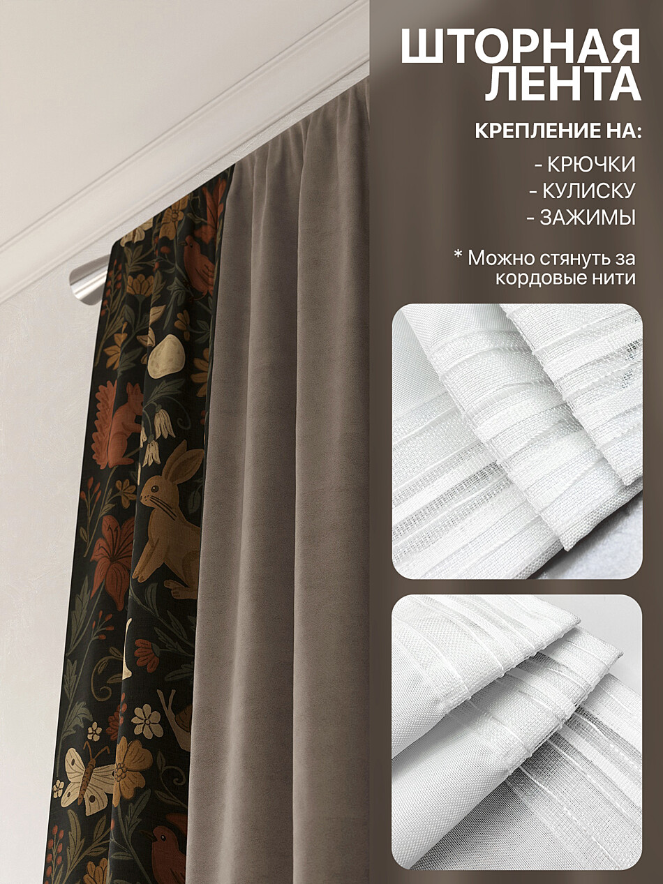 Крепление: Шторная лента (крючки), Кулиска Подробнее