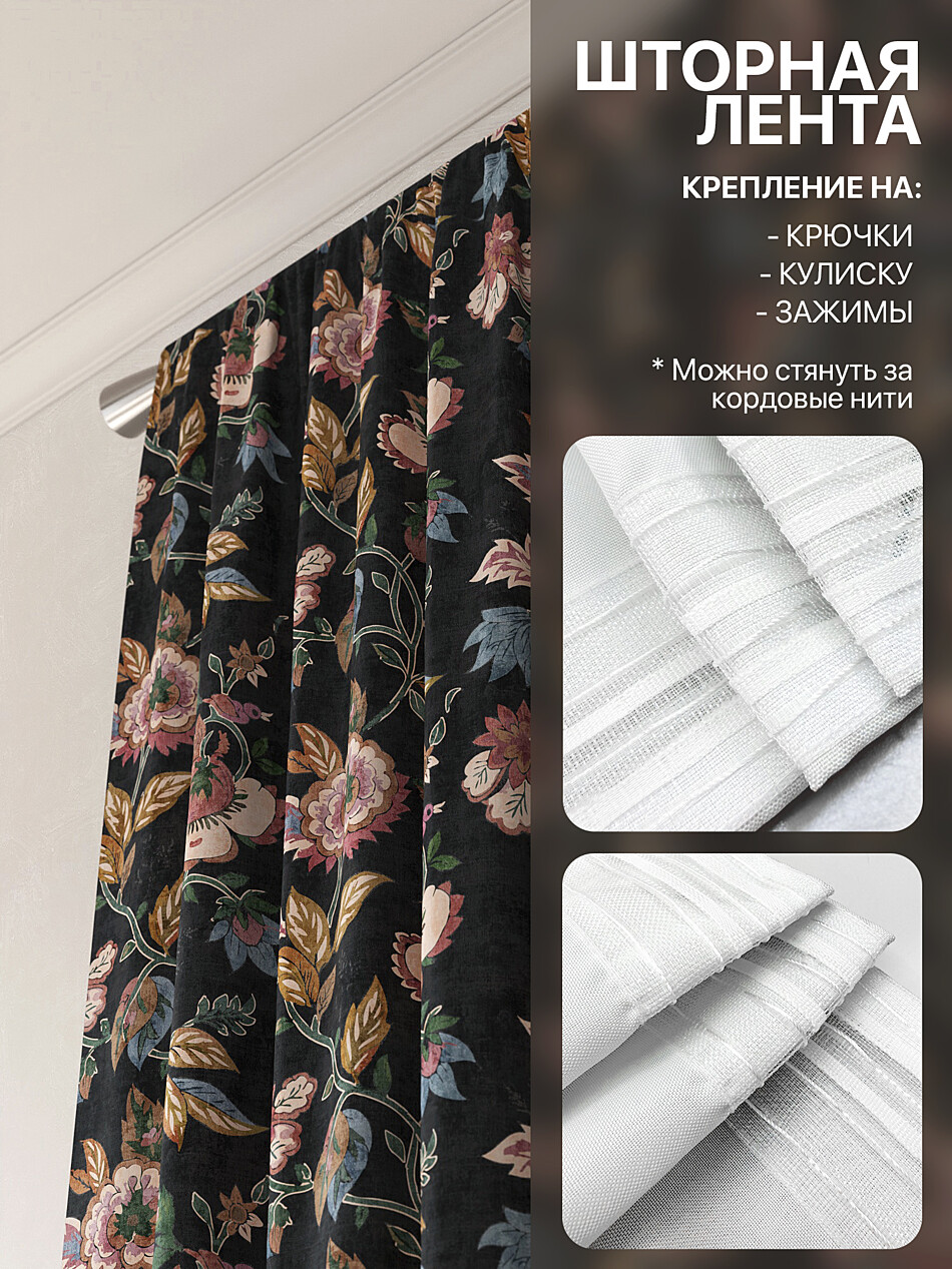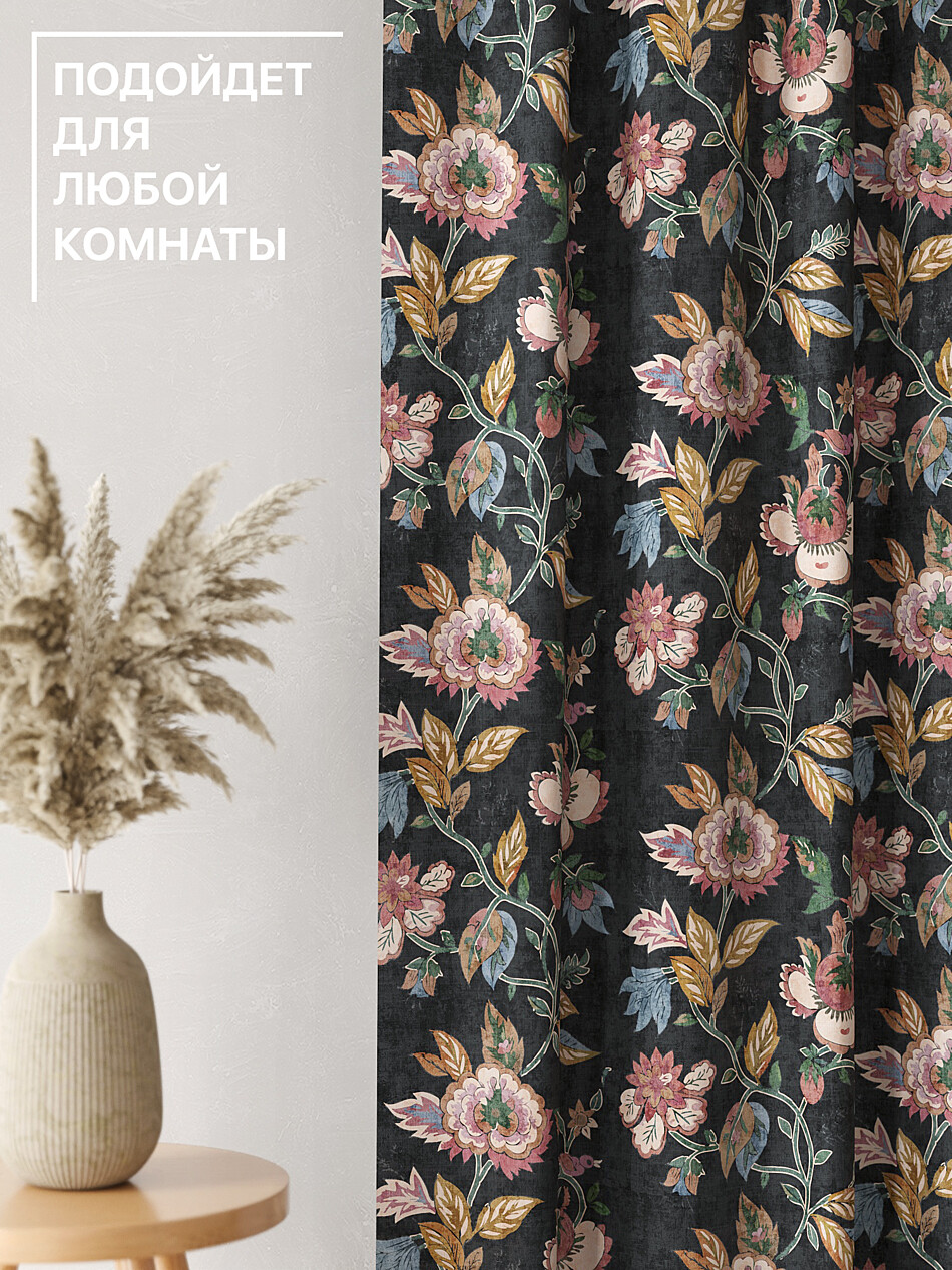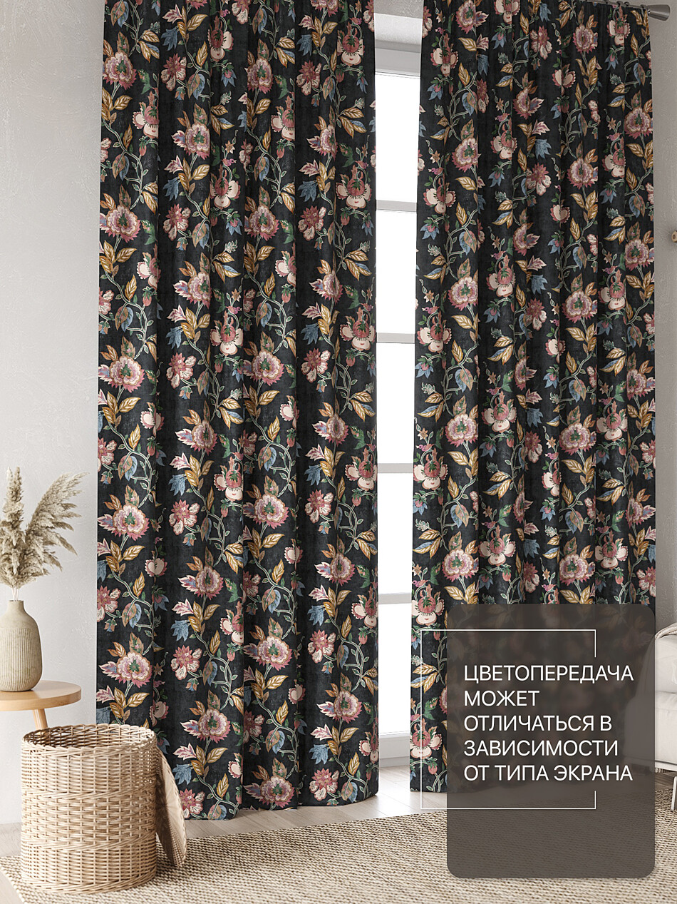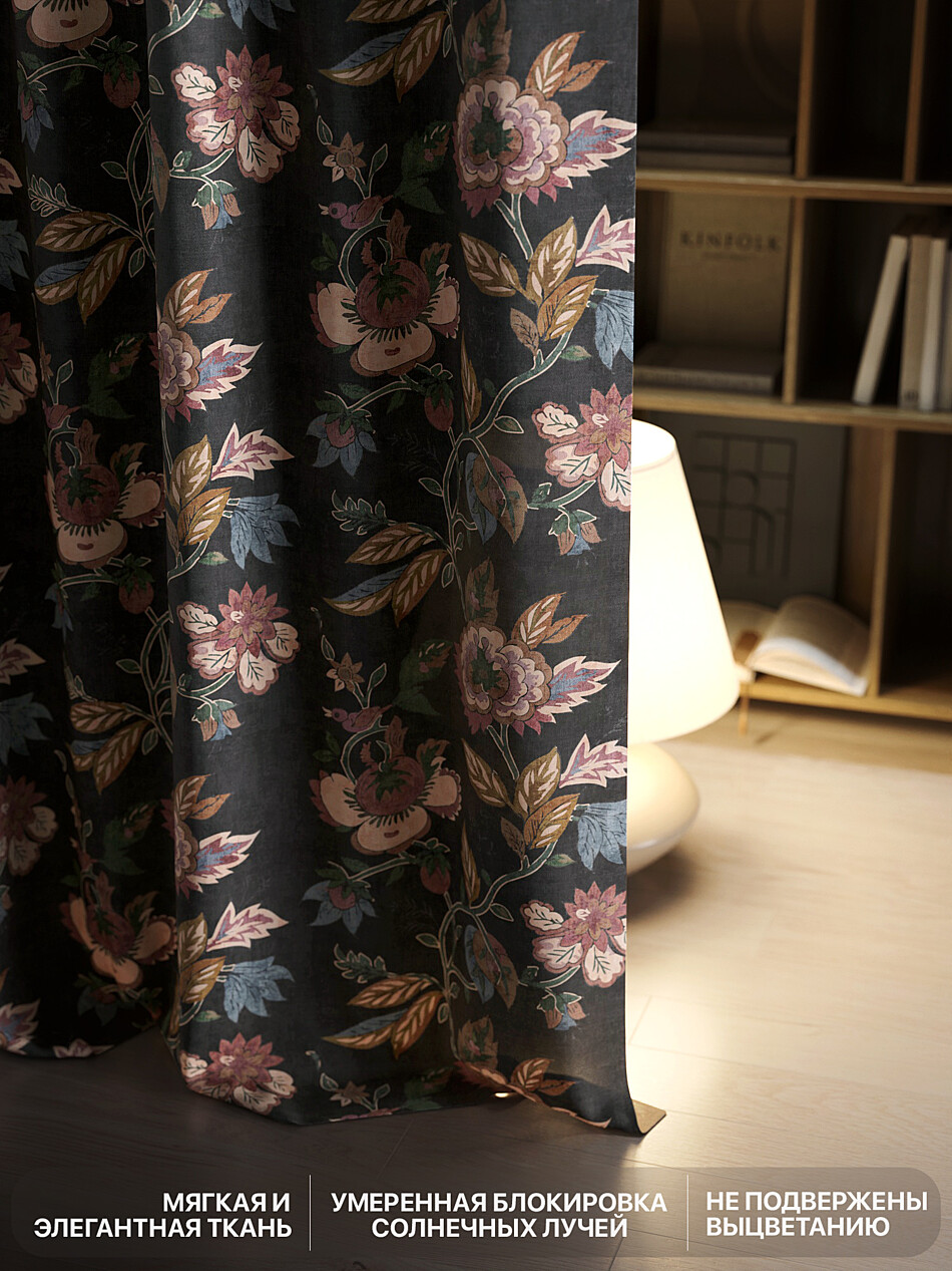 Шторы с черными цветами