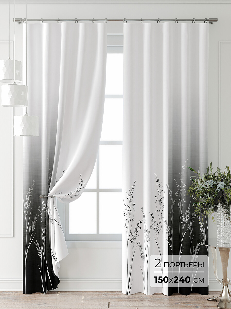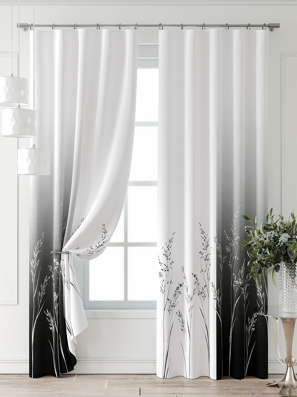 Шторы с черными цветами