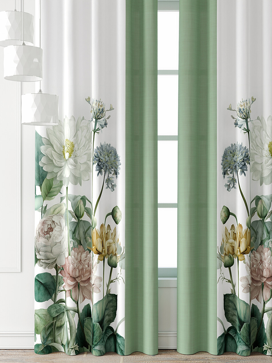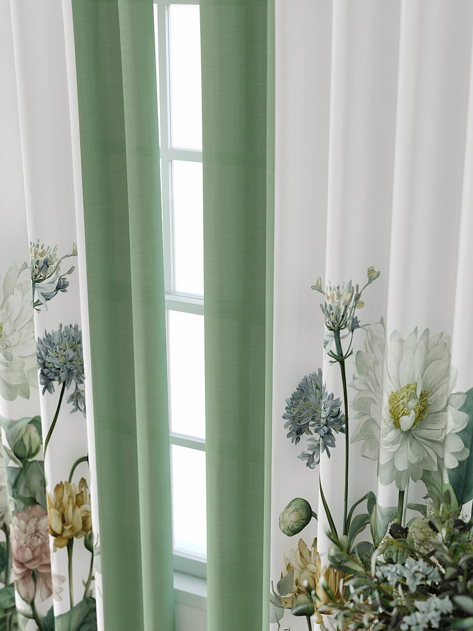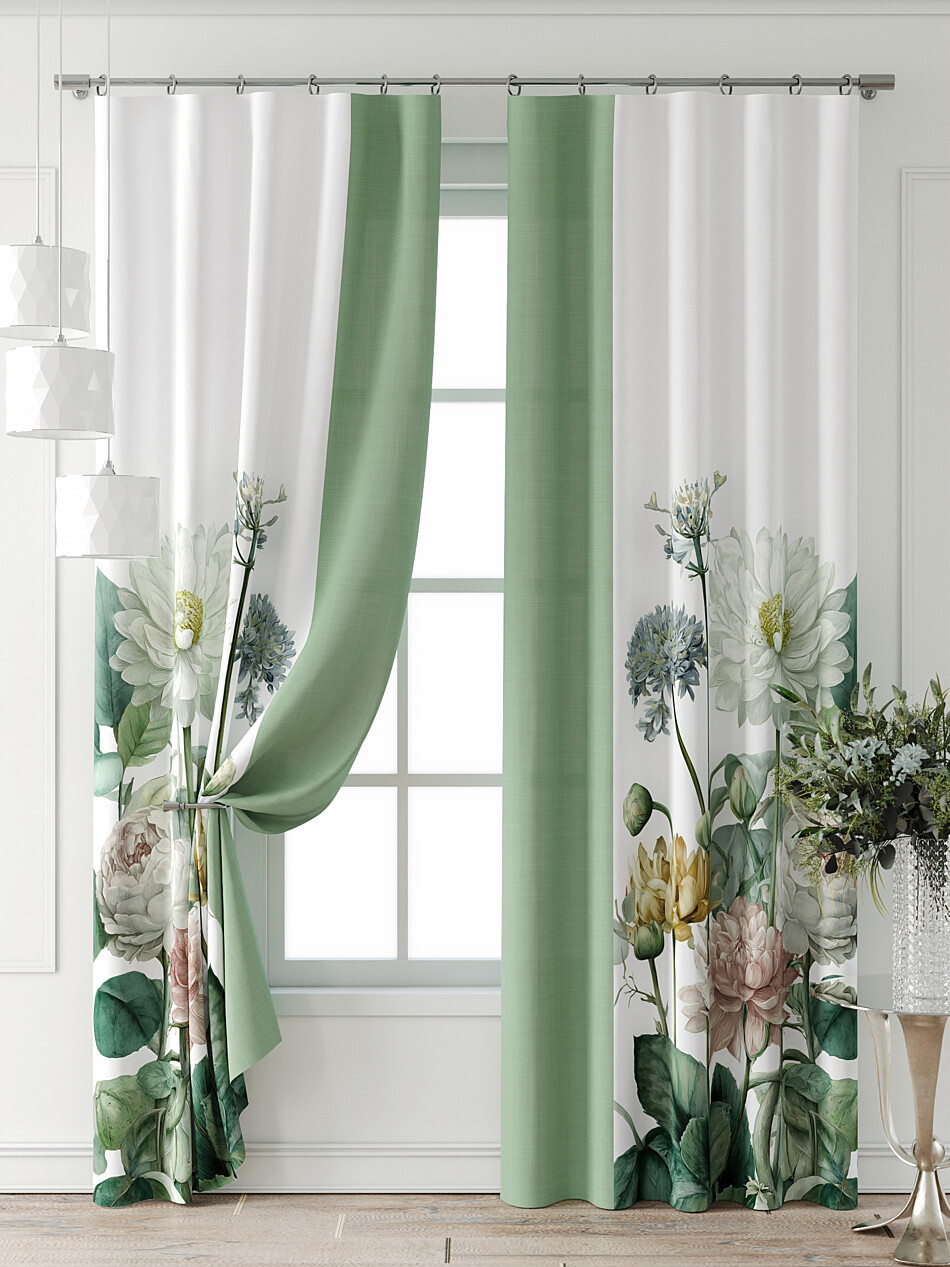 Занавески бело-зеленые