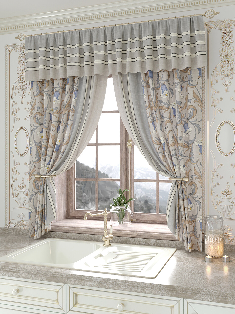 Шторы для кухни с ламбрекеном