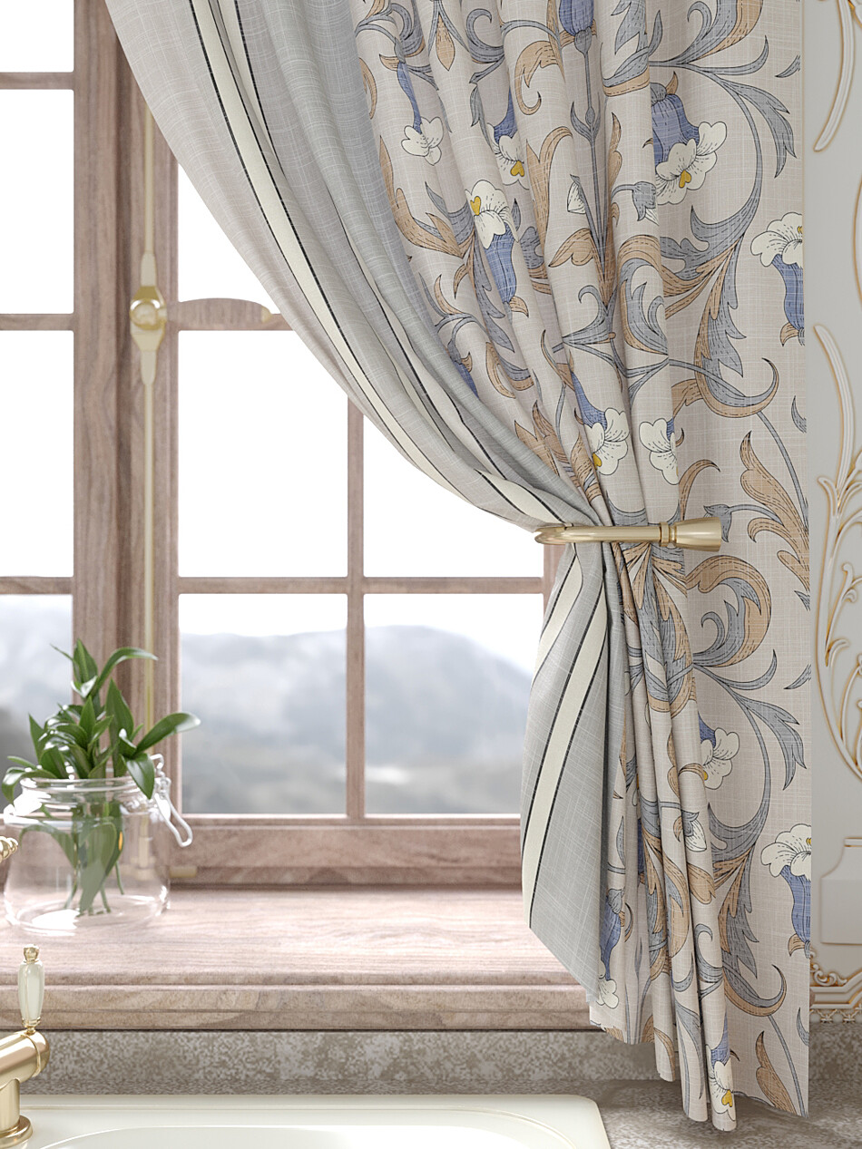 Шторы бежево-голубые