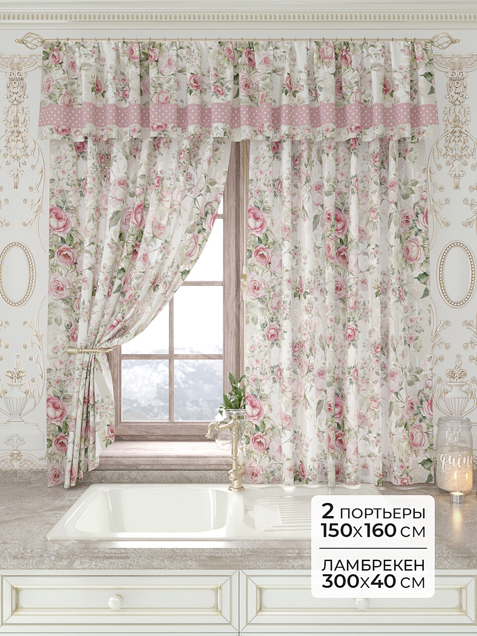 705062 Портьера 2 шт. — 150х160 см., вуаль 150х60 см — 1 шт., подхват - 2 шт.