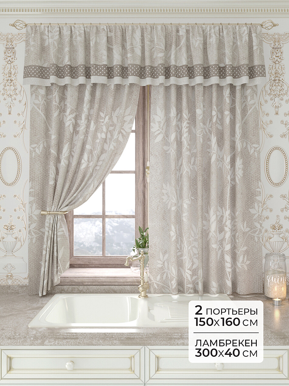 705078 Портьера 2 шт. — 150х160 см., вуаль 150х60 см — 1 шт., подхват - 2 шт.
