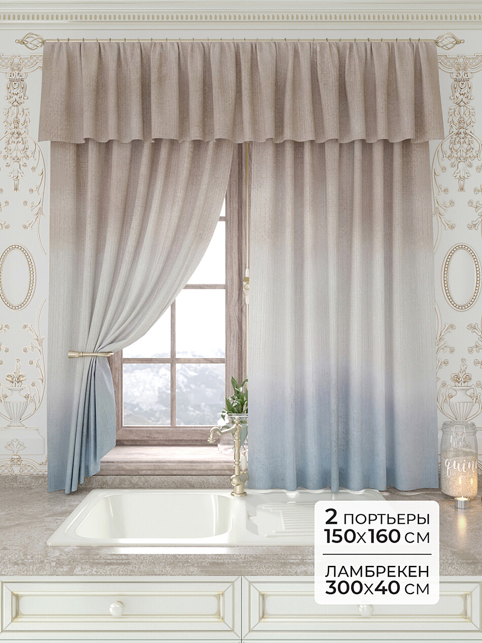 934037160 Портьеры 150х160 см. — 2 шт., Ламбрекен 300х40 см. — 1 шт.