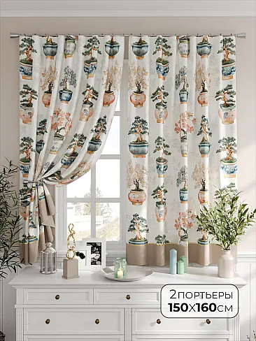 705128 Портьера 2 шт. — 150х160 см., вуаль 150х60 см — 1 шт., подхват - 2 шт.