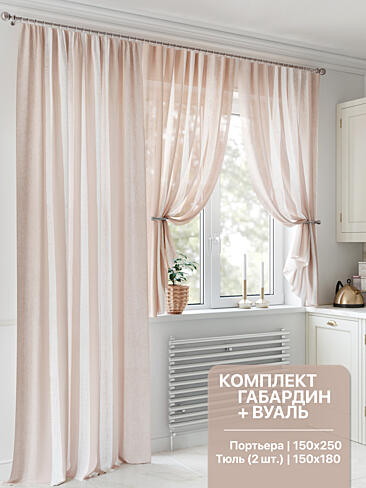 547080 Портьера 150х250 см — 1 шт., вуаль 150х180 см — 2 шт.