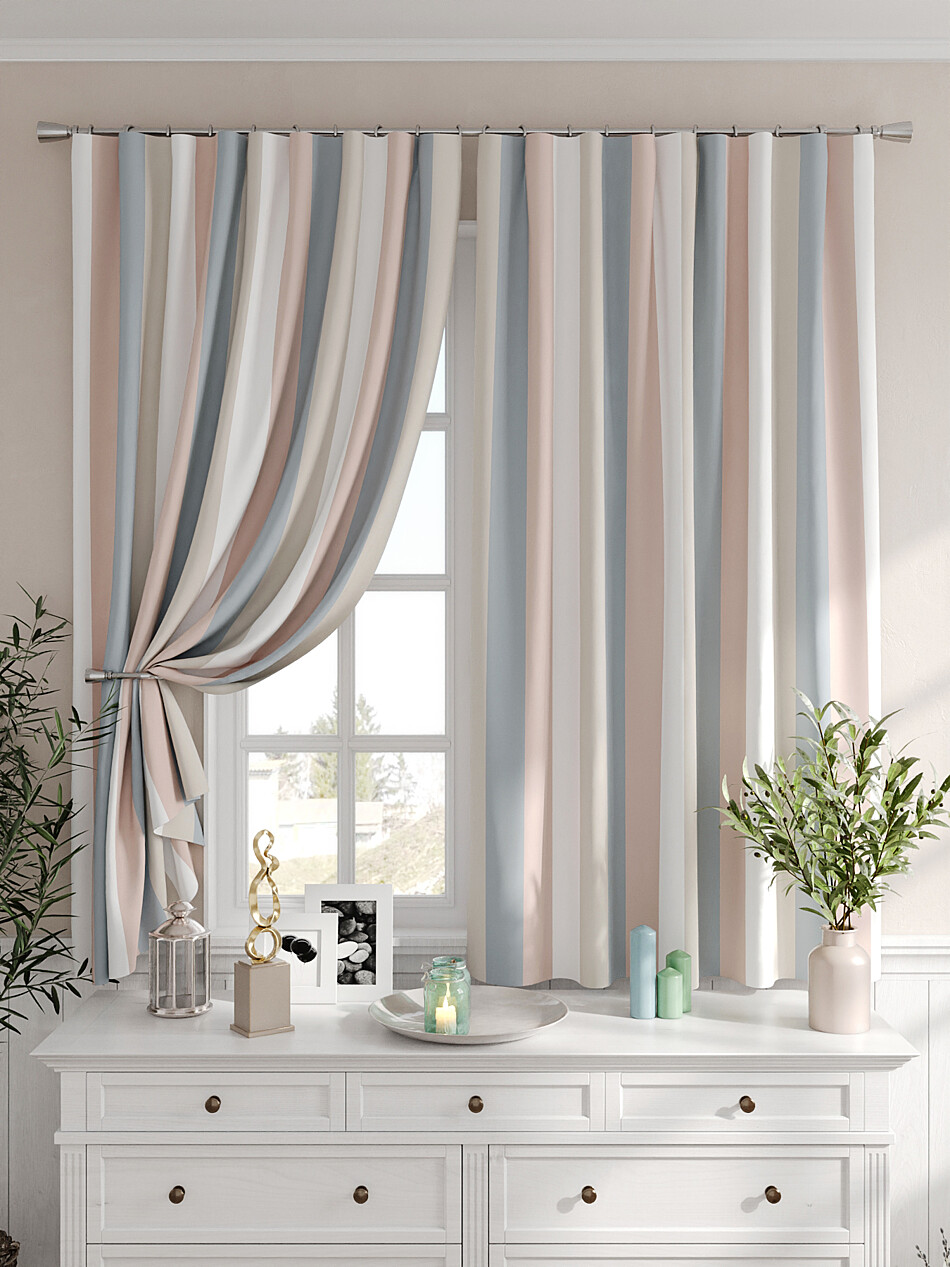Шторы бежево-голубые