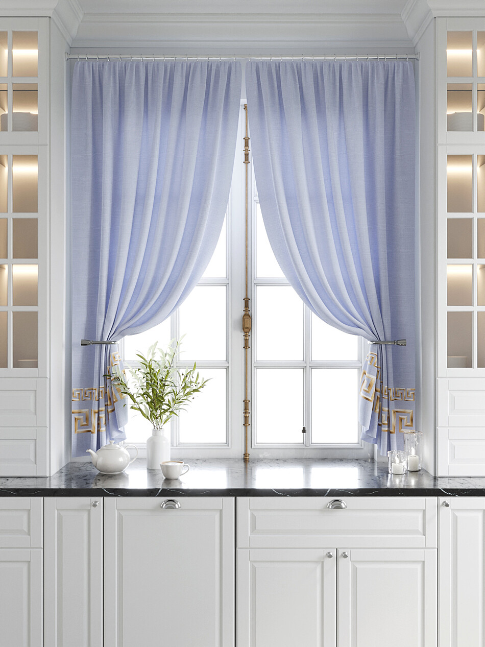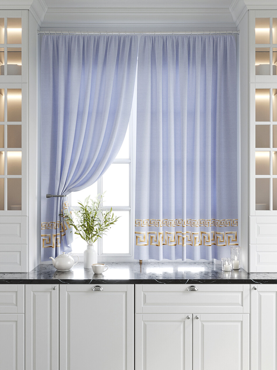 Молочно-голубые шторы