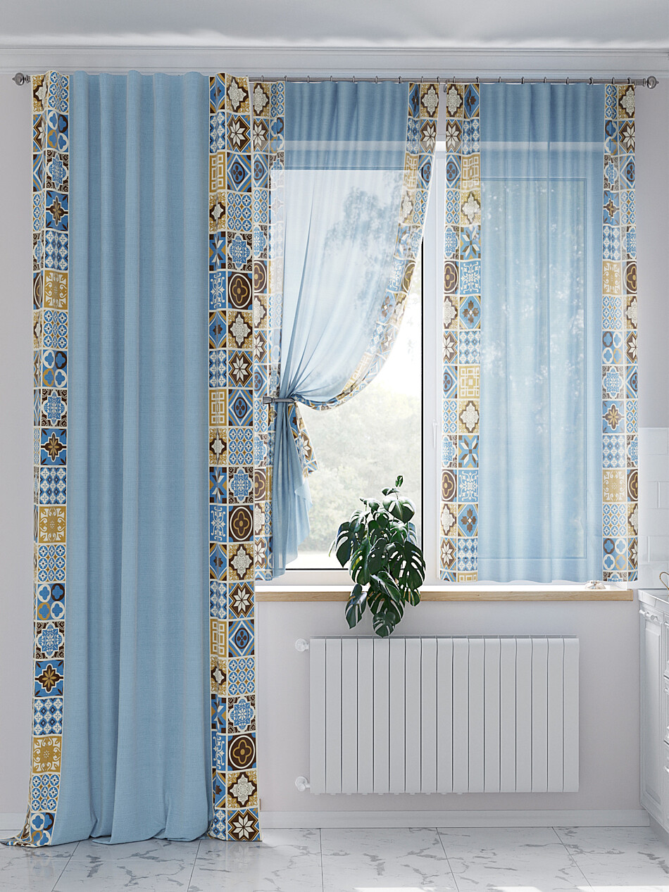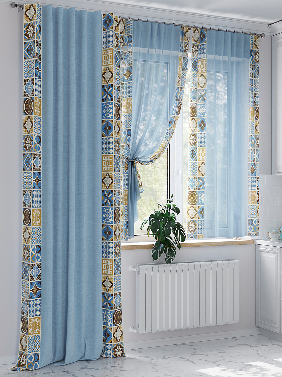 924001 Портьера 150х260 см. — 1 шт., вуаль 150х170 см. — 2 шт., ламбрекен 300х40 см. — 1 шт.