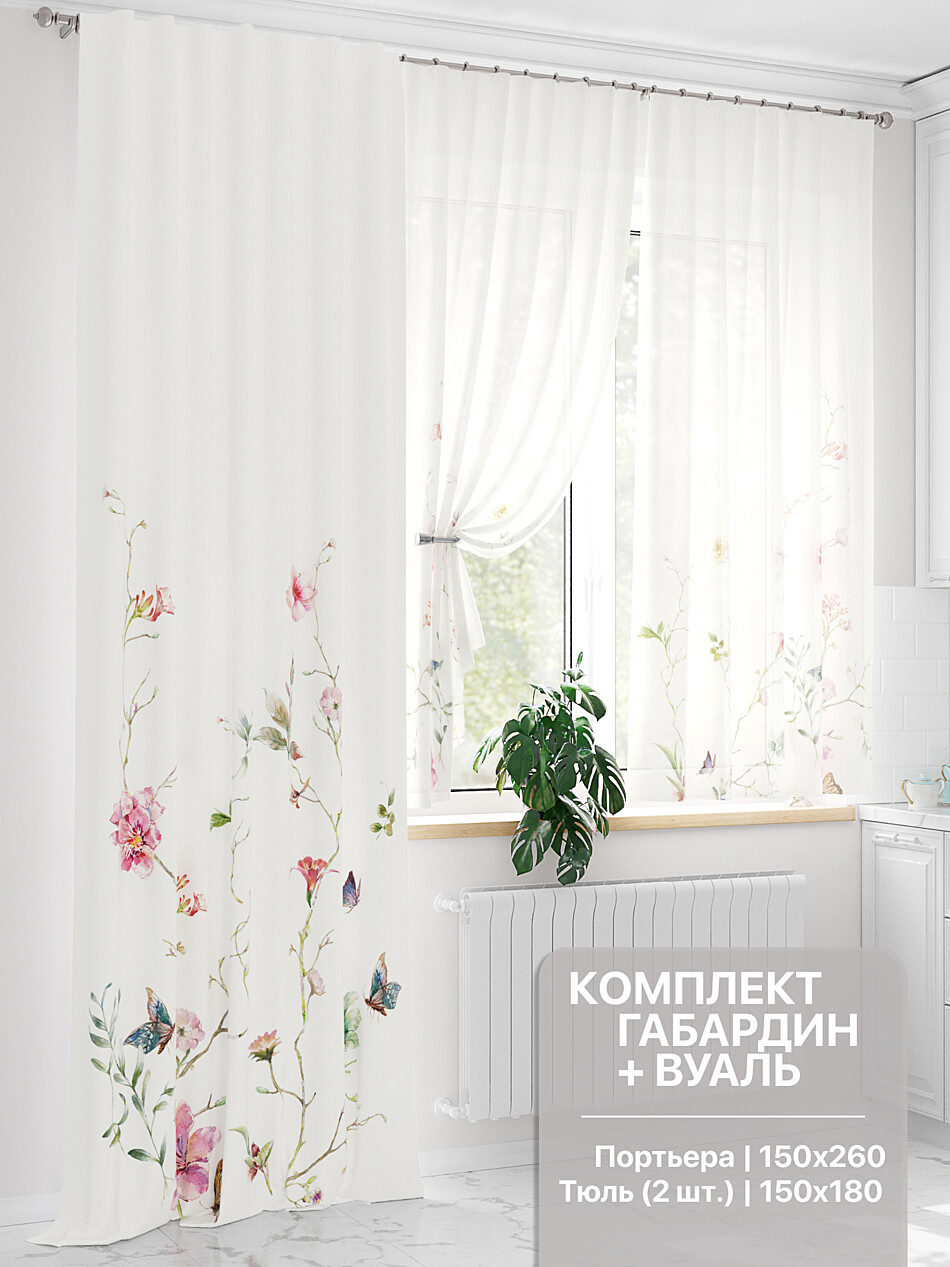 924006 Портьера 150х260 см. — 1 шт., вуаль 150х170 см. — 2 шт., ламбрекен 300х40 см. — 1 шт.