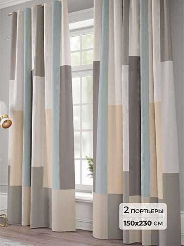 Шторы бежево-голубые